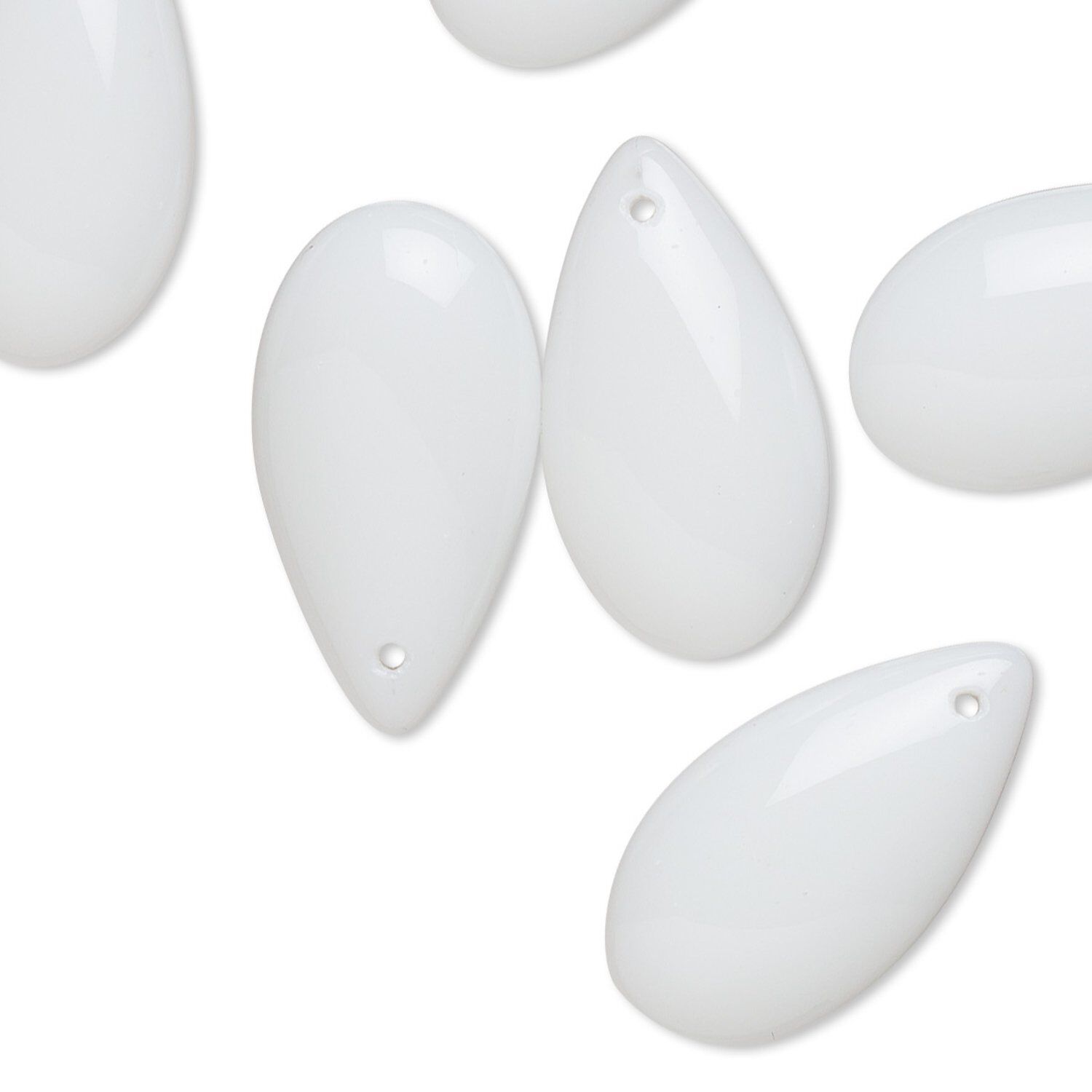 Preciosa Czech pressed glass drops in opaque opaline white are imported from the Czech Republic. Items are made with solid color glass, which means the base color of the glass is saturated throughout the object and will not fade or rub off over time. Size and shape may vary slightly and color may vary from dye lot to dye lot.