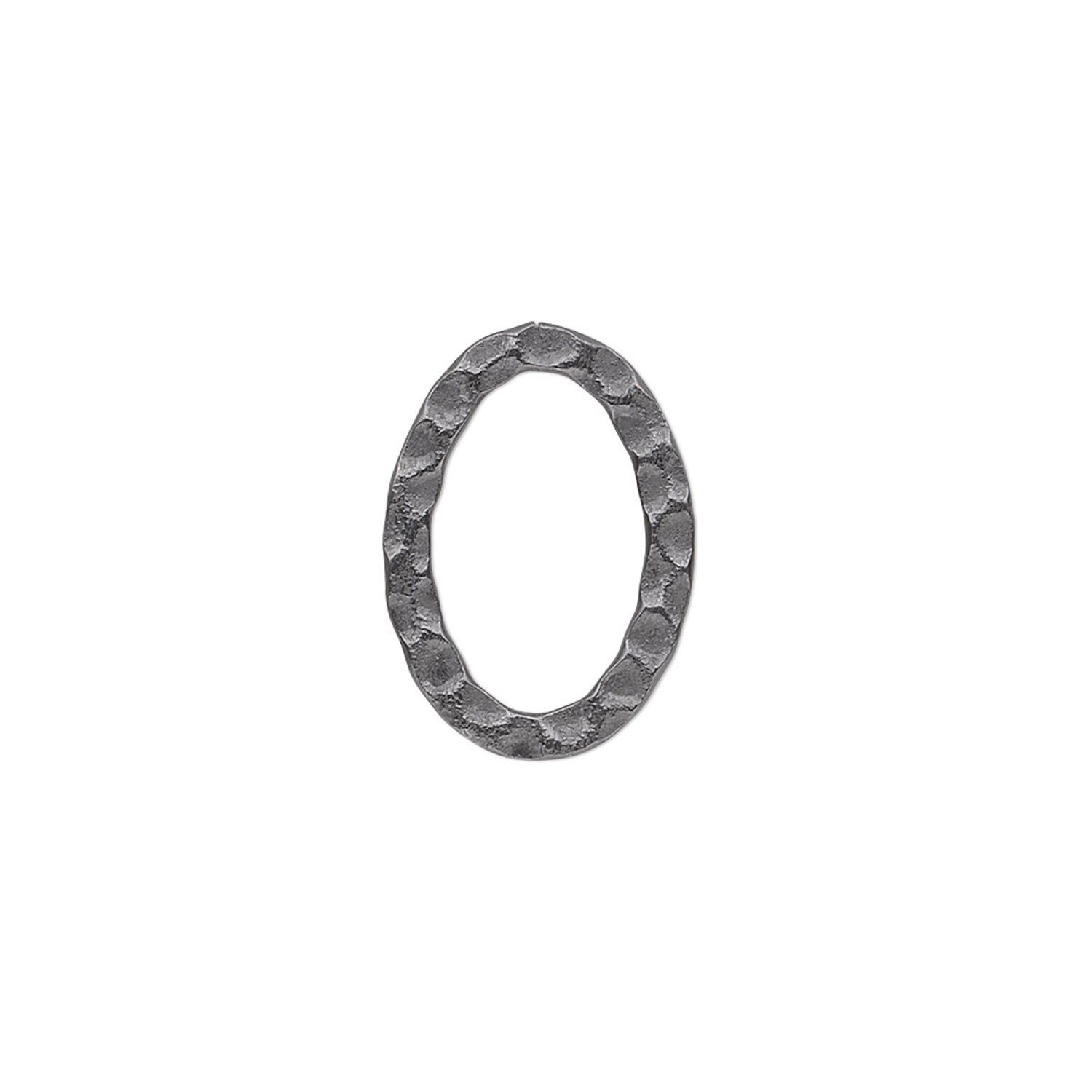Component, gunmetal-plated steel, 18x13mm double-sided hammered open flat oval. Sold per pkg of 12.