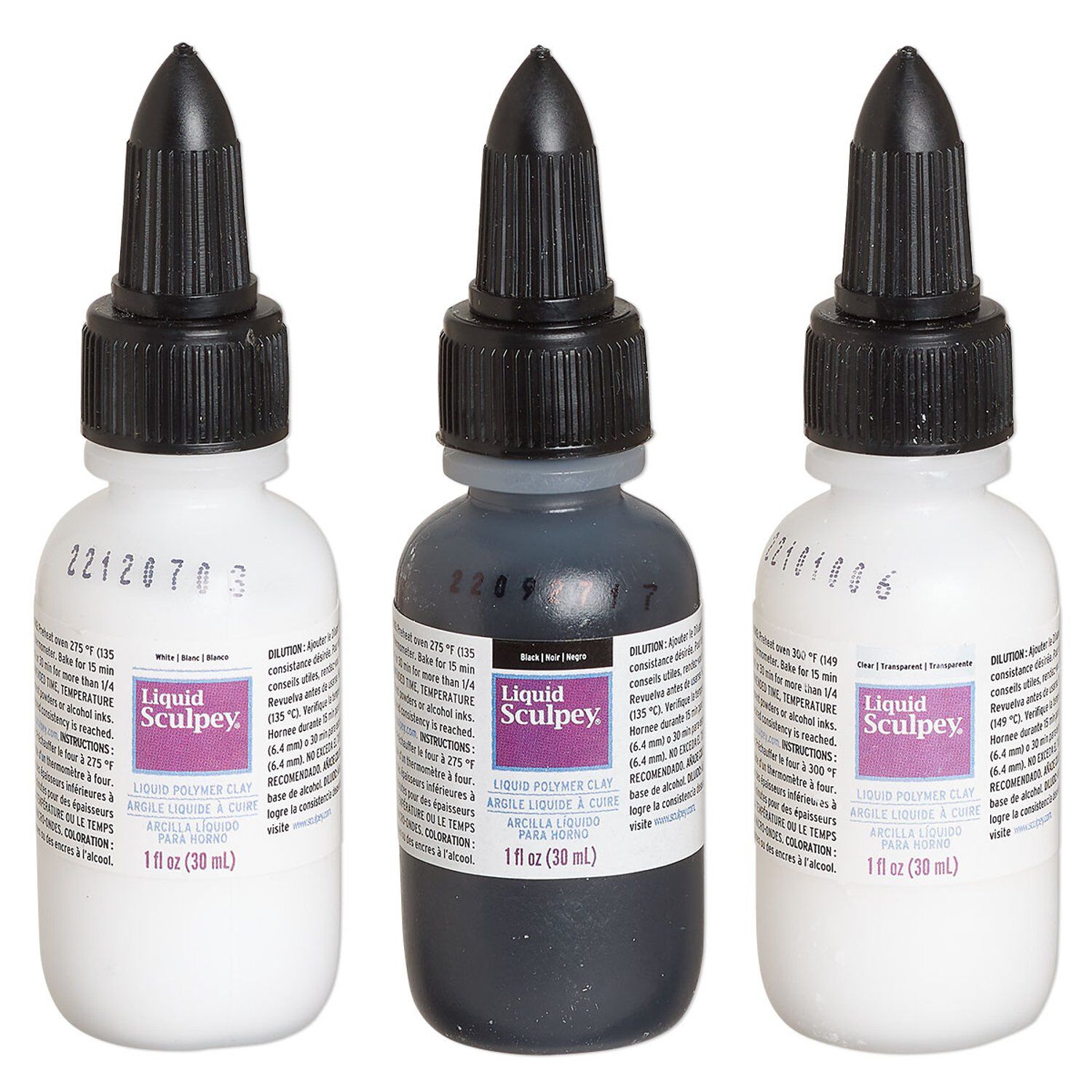Liquid polymer clay 1pkg3, 1 fluid ounce translucent clear / opaque black / opaque white Liquid Sculpey®