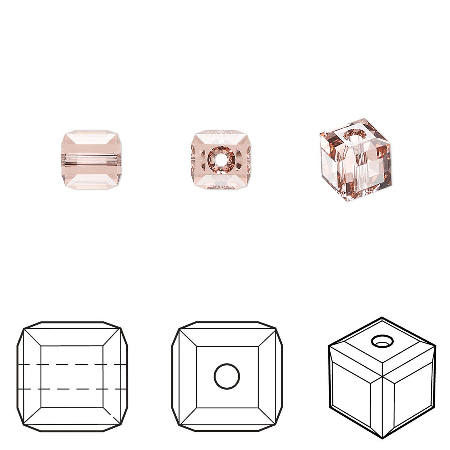 Bead 48pk rose peach, Crystal Passions® 6mm cube 5601