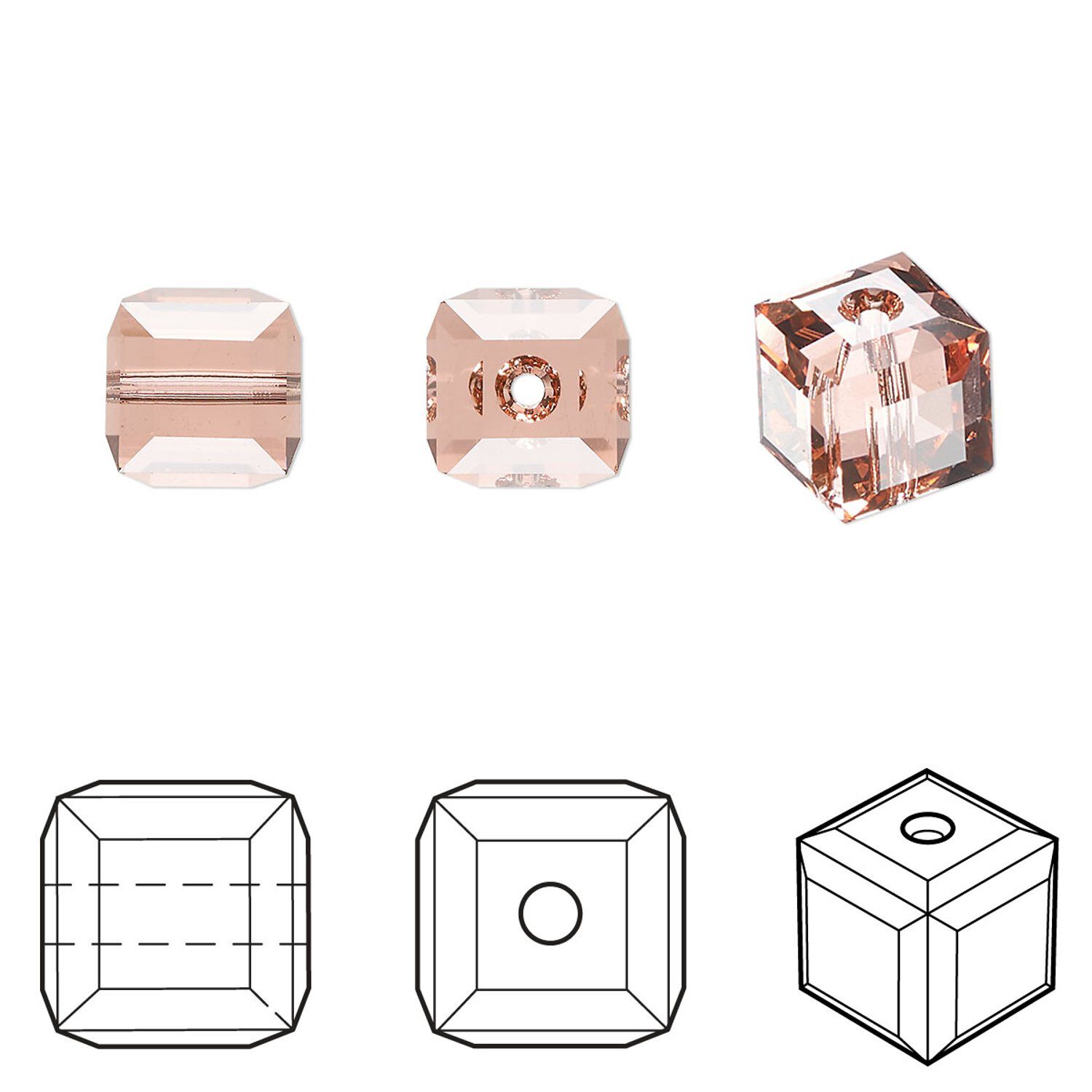 Bead 96pk rose peach, Swarovski® 8mm cube 5601