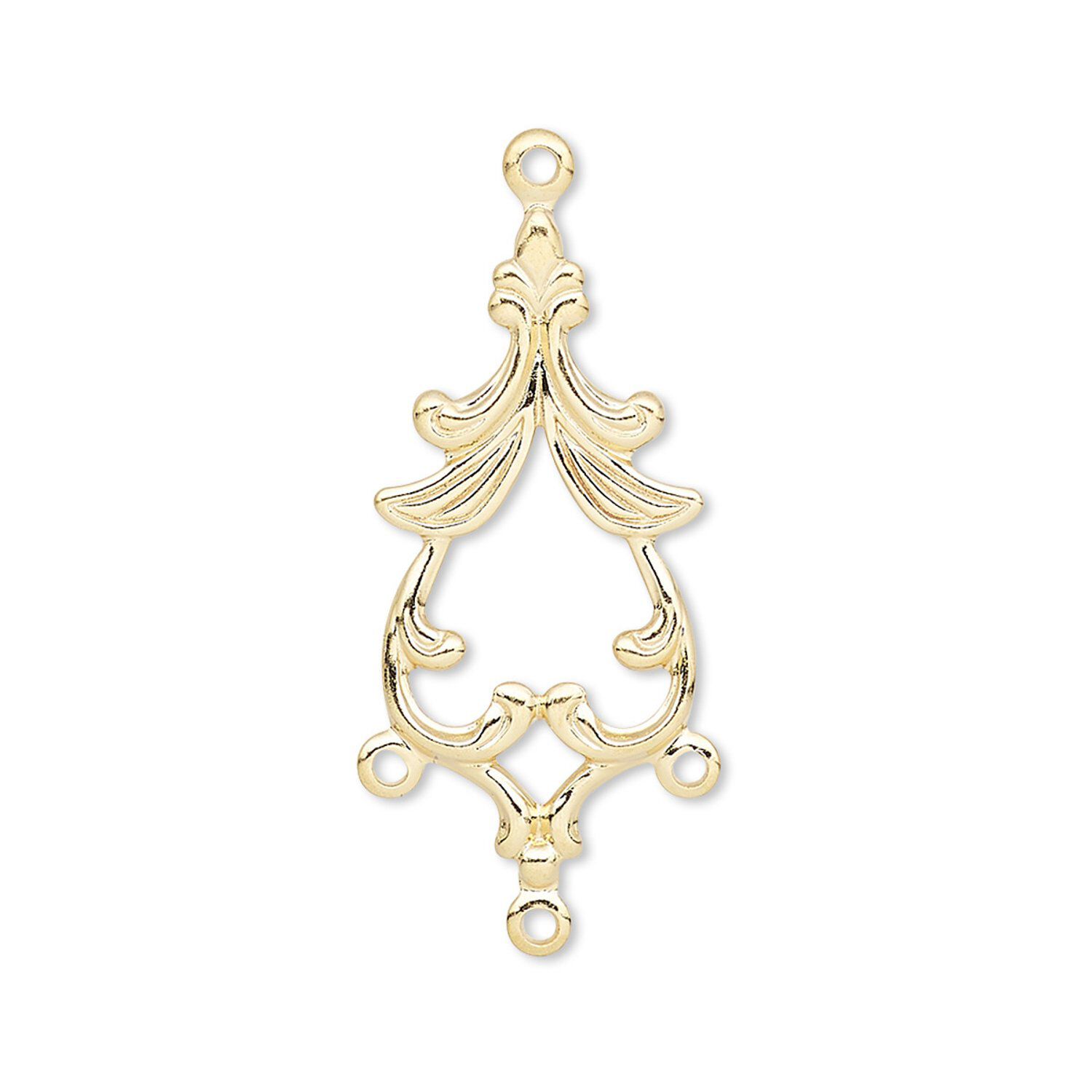 Drop, gold-plated brass, 27x13mm single-sided fancy spade with 3 loops. Sold per pkg of 10.