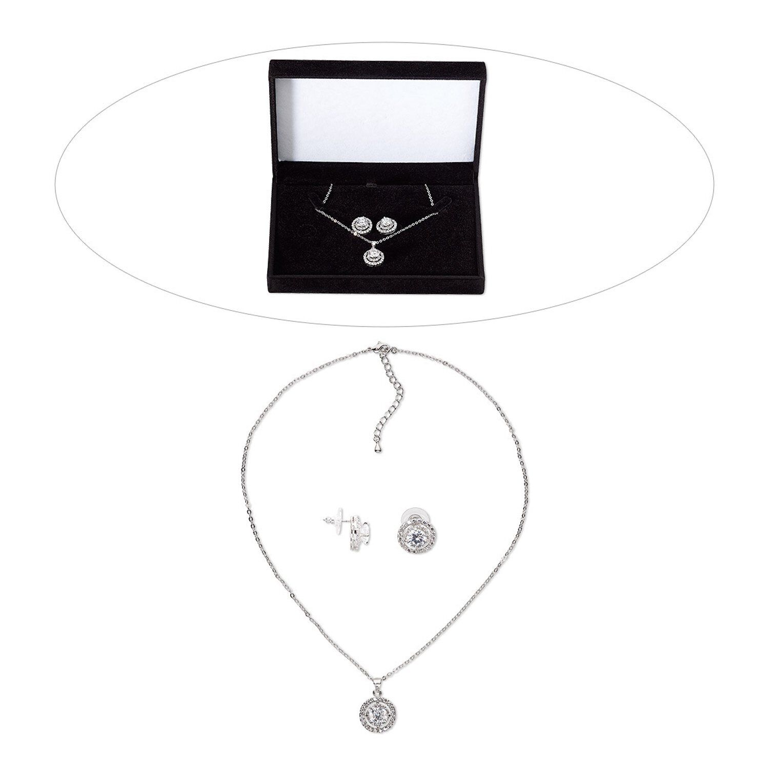 This rhodium-finished brass and steel necklace and earring set features beautiful clear cubic zirconia. Along with the celebrated sparkle and color, this laboratory-synthesized luxury gemstone emulates numerous mineral qualities of natural diamonds and gemstones.