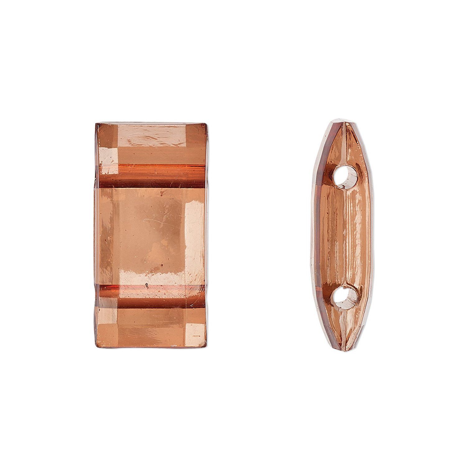 Bead, acrylic, brown, 18x9mm double-drilled faceted puffed rectangle, fits up to 10mm bead. Sold per pkg of 20.