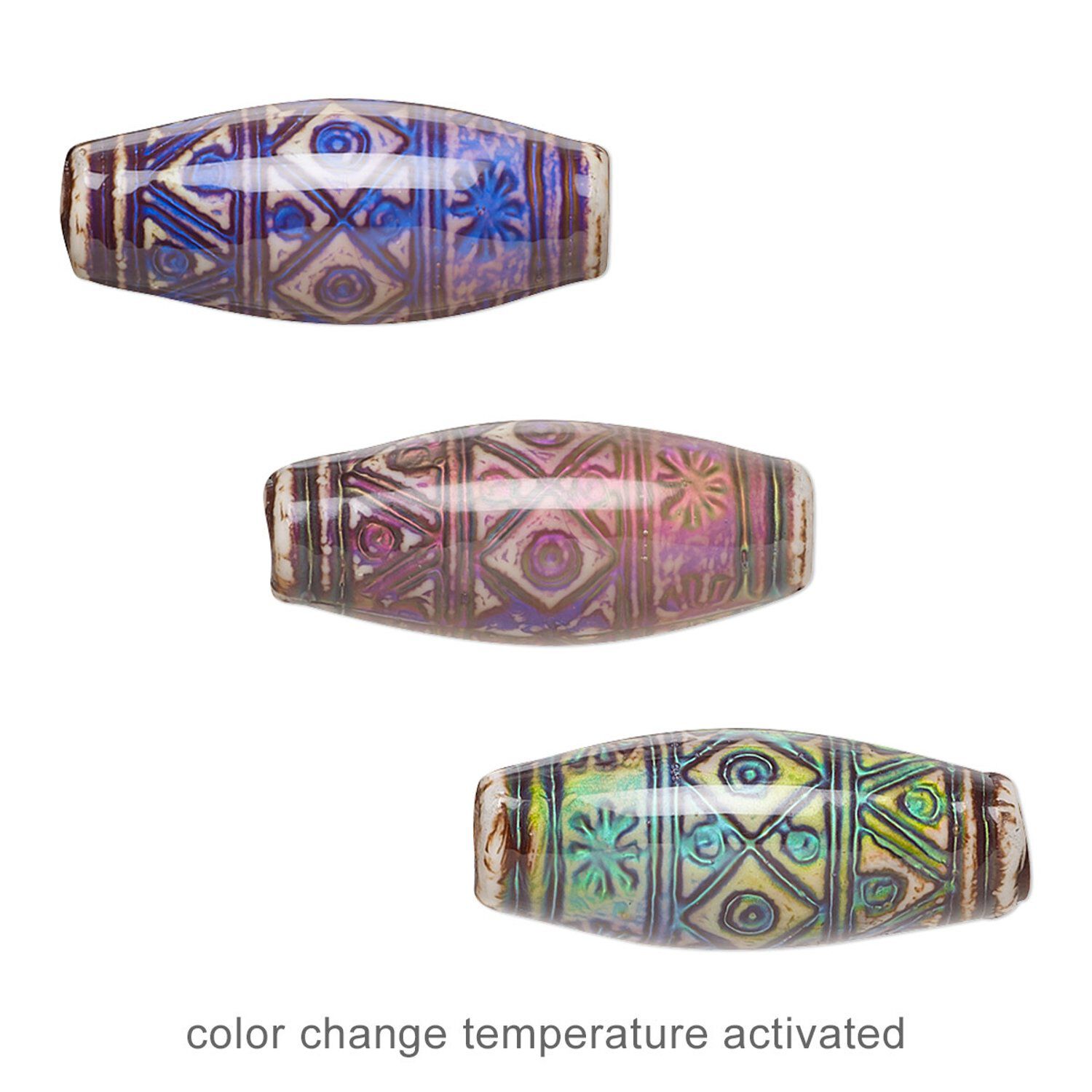 Bead, acrylic, multicolored, 22x9mm color-changing oval tube with fancy design. Sold per pkg of 2.