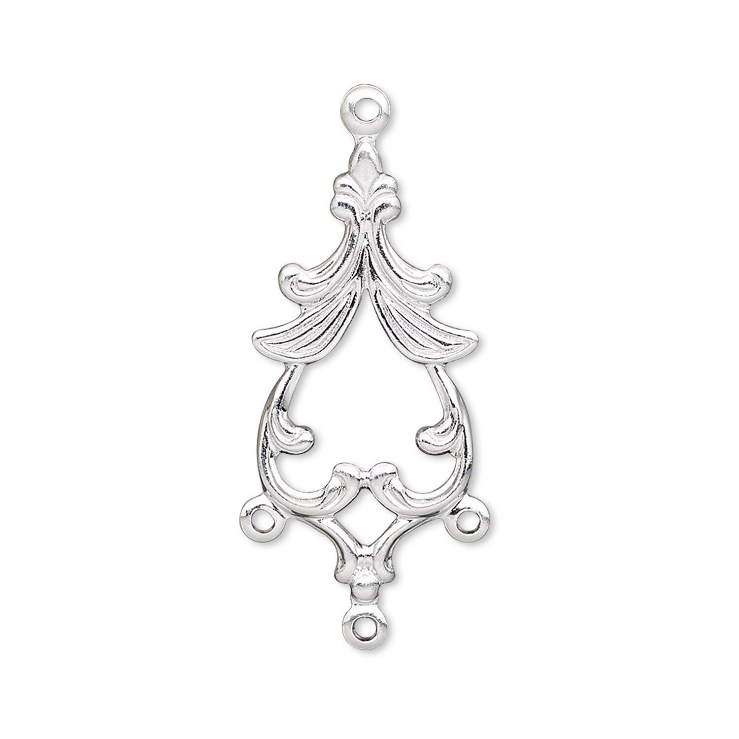 Drop, silver-plated brass, 27x13mm single-sided fancy spade with 3 loops. Sold per pkg of 10.