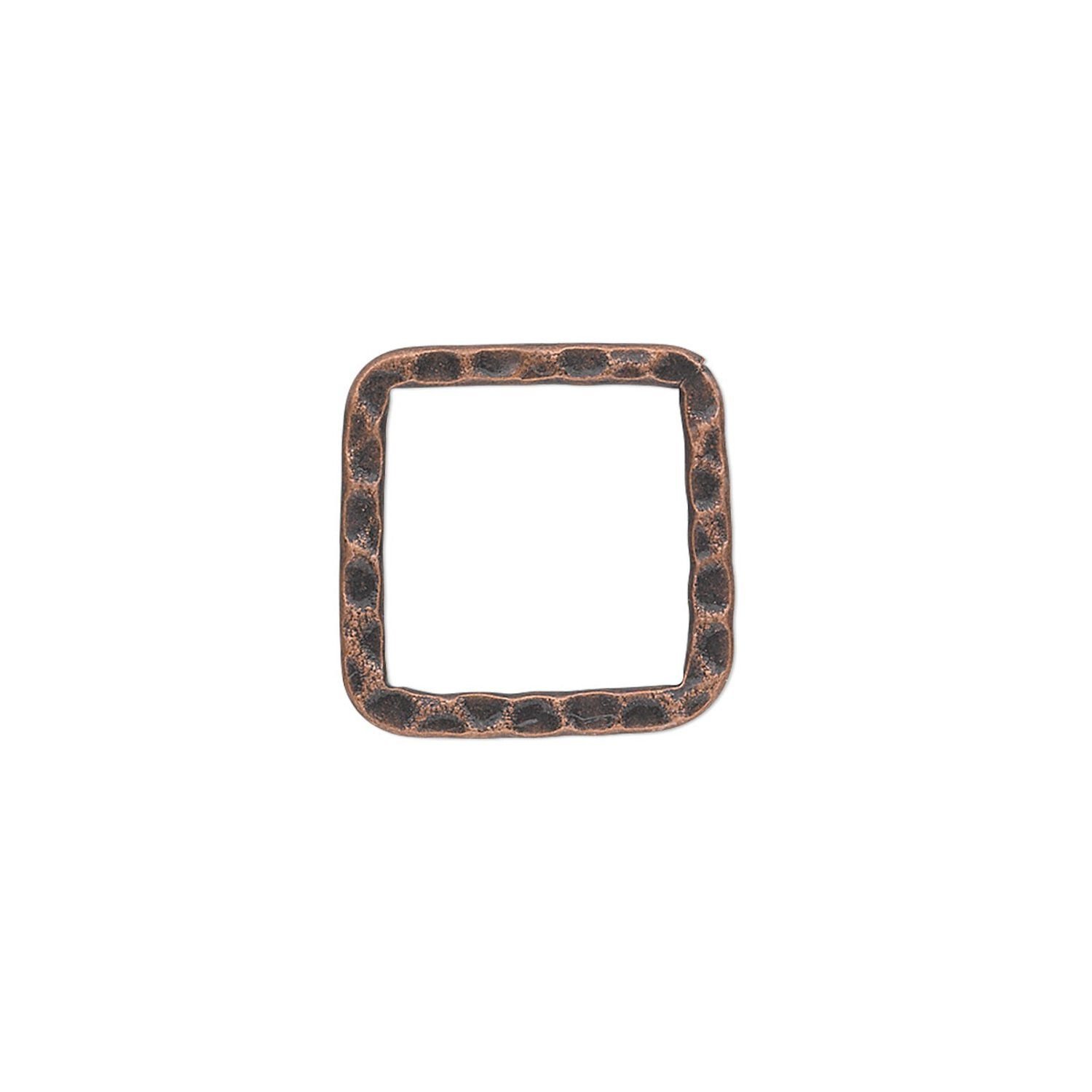 Component, antique copper-plated steel, 16x16mm double-sided hammered flat open square. Sold per pkg of 10.