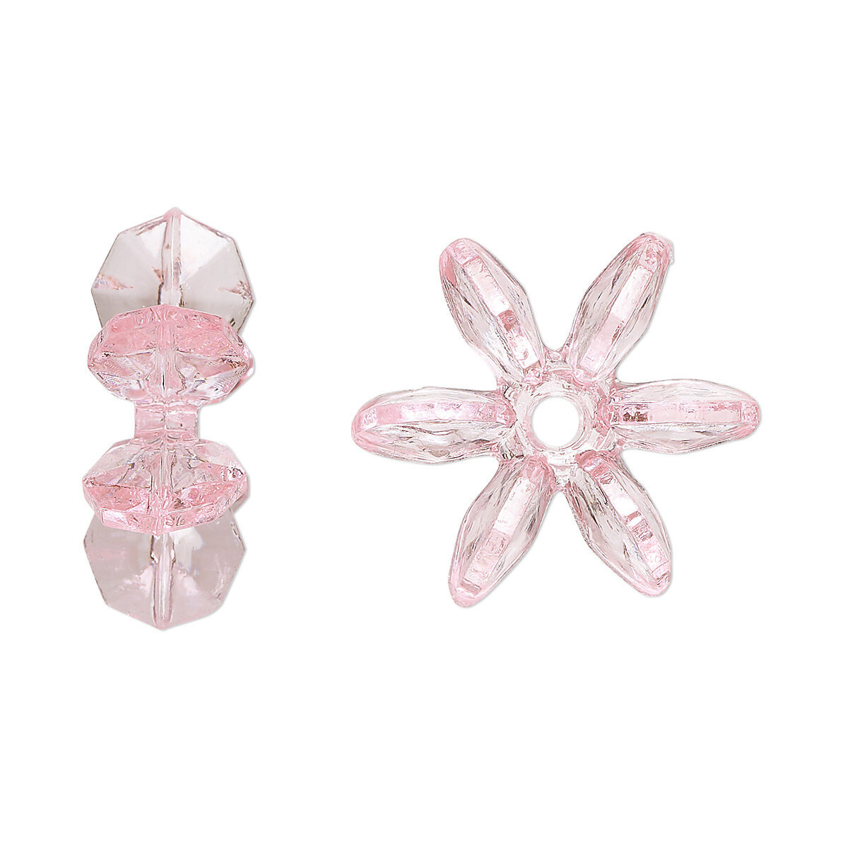 Made of transparent light pink acrylic, these paddle beads have been injection molded for consistent size, shape and surface. Lightweight and economical, they are ideal for stringing projects, fabric embroidery, embellishment and holiday ornaments . These beads nest into each other to create unique designs seen most often employed in holiday ornaments.