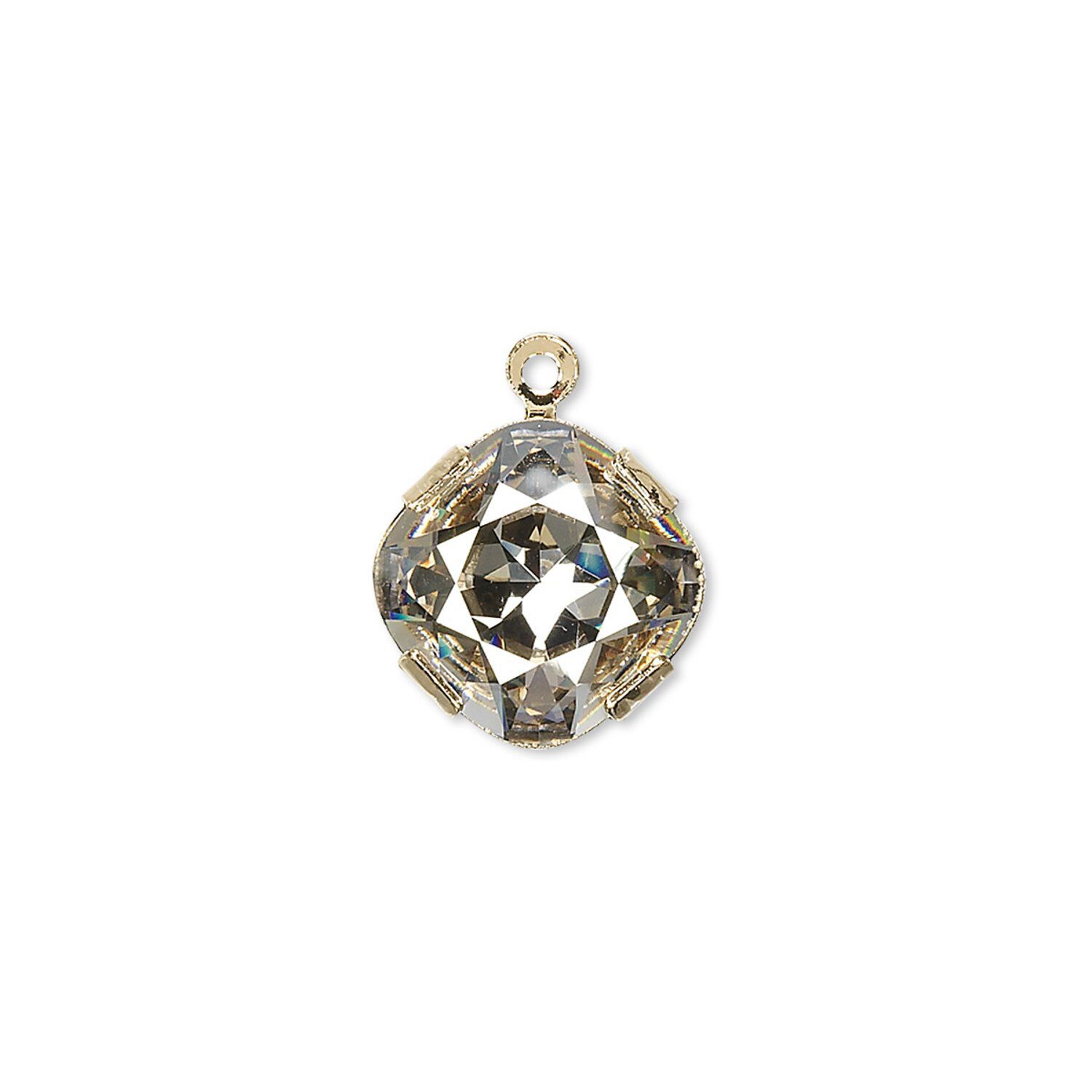 Drop 1pk crystal silver shade gold plate, Crystal Passions® 13mm diamond 18704
