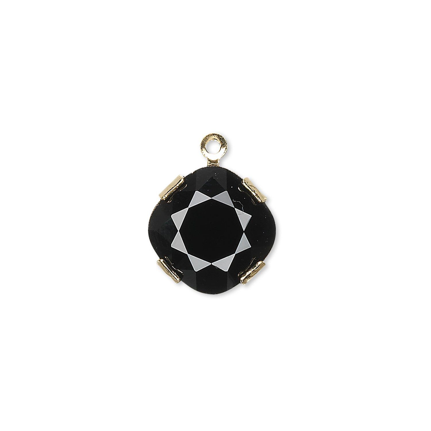 Drop 1pk jet gold plate, Crystal Passions® 13mm diamond 18704