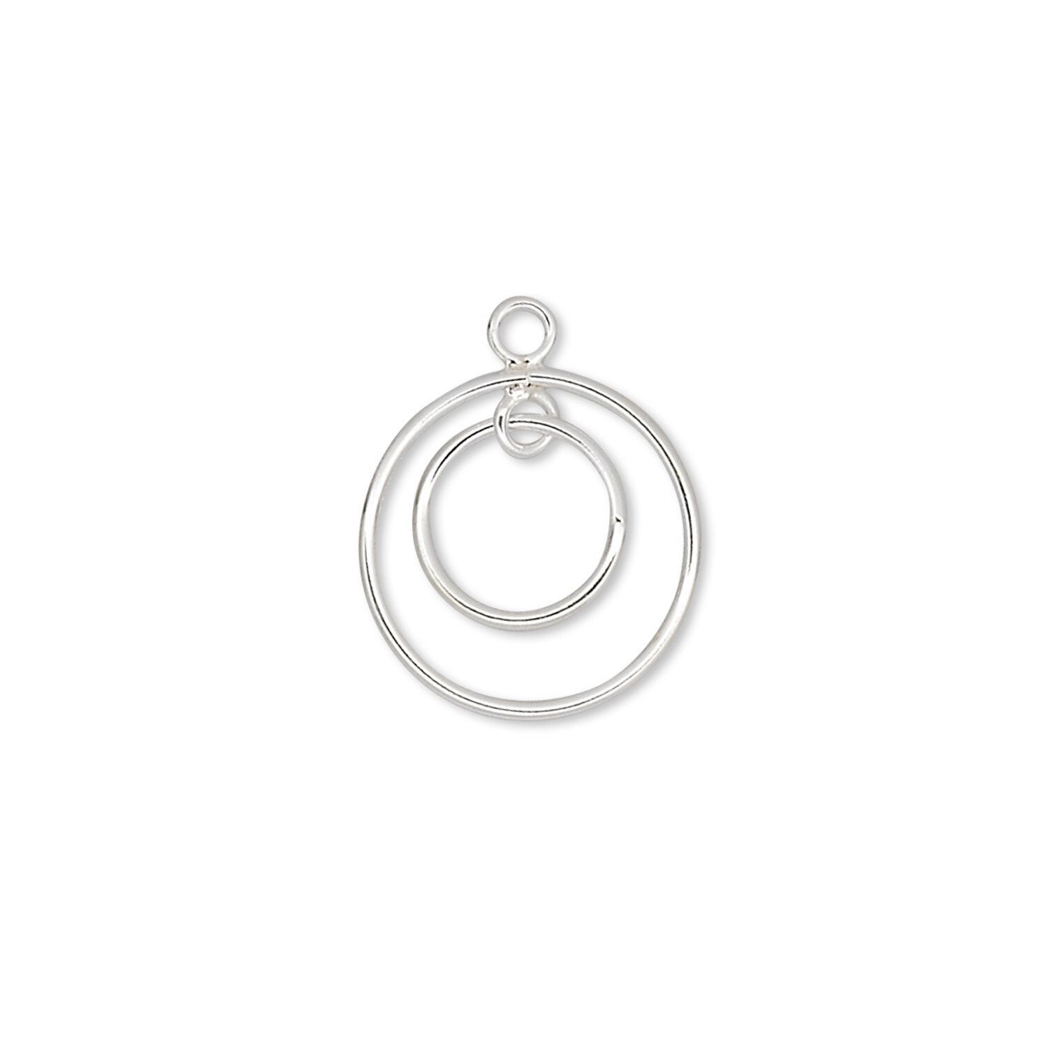Sterling silver double-circle drop, 1-loop, 14mm. Pkg of 2.