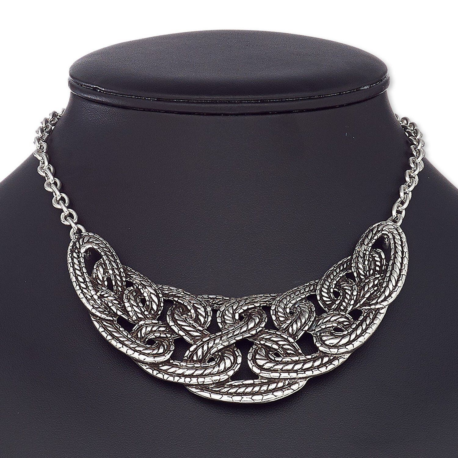 Intricate Celtic-style knot work "pewter" (zinc-based alloy) bib necklace offers instant style and instant resale value. Ready-to-wear jewelry is ideal for counter displays--or as a great gift item. Colors, shapes and sizes may vary in each lot.