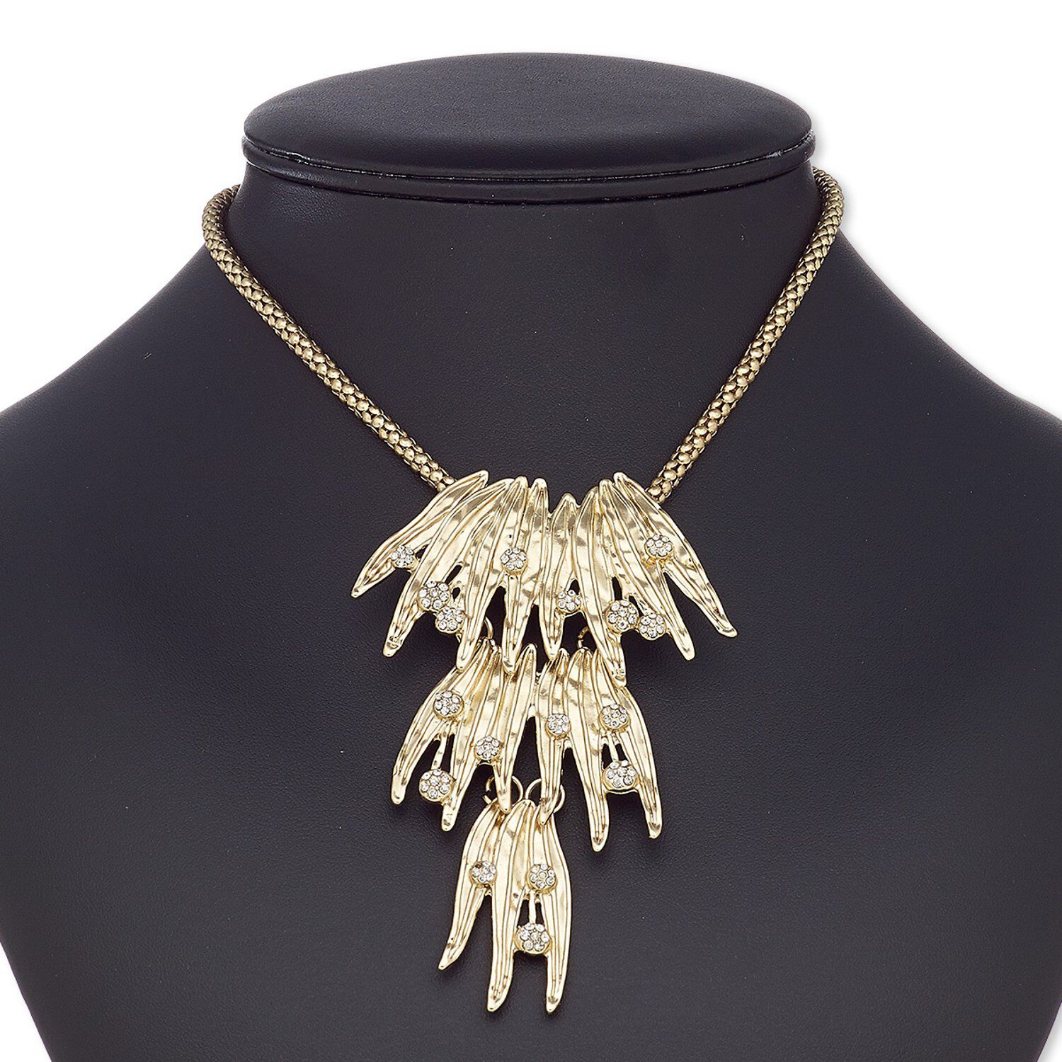 Metal finish on the textured leaf components offers a bold contrast to the brilliant sparkle and light play of glass rhinestones. With an instant resale value, this ready-to-wear necklace is ideal for counter displays--or as a great gift item. Colors, shapes and sizes may vary in each lot.