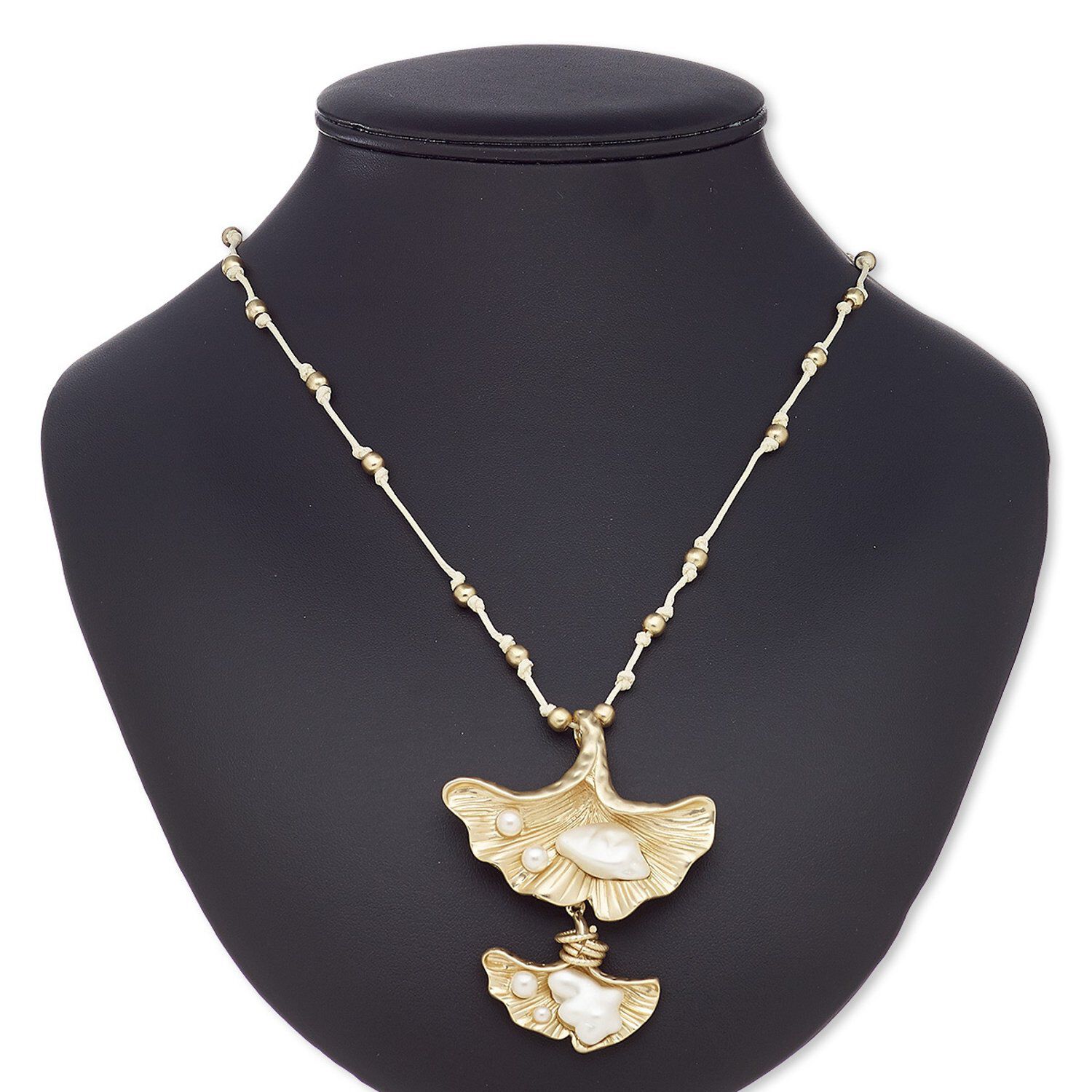 Metal finish offers a bold contrast to the brilliant sparkle of glass rhinestones and the iridescence of resin pearls. Double gingko leaf pendant provides a great design as is, or can be separated to create mother/daughter or similar paired jewelry styles. Adjust necklace length by knotting over a sliding center bead. With an instant resale value, this ready-to-wear necklace is ideal for counter displays--or as a great gift item. Colors, shapes and sizes may vary in each lot.