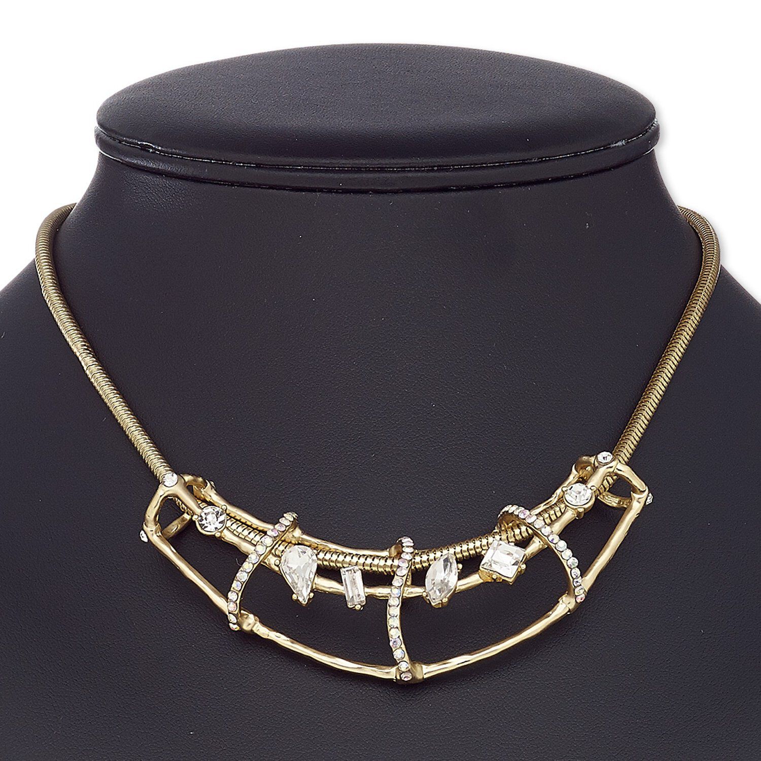 Metal finish offers a bold contrast to the brilliant sparkle and light play of clear and iridescent glass rhinestones. With an instant resale value, this ready-to-wear necklace is ideal for counter displays--or as a great gift item. Colors, shapes and sizes may vary in each lot.