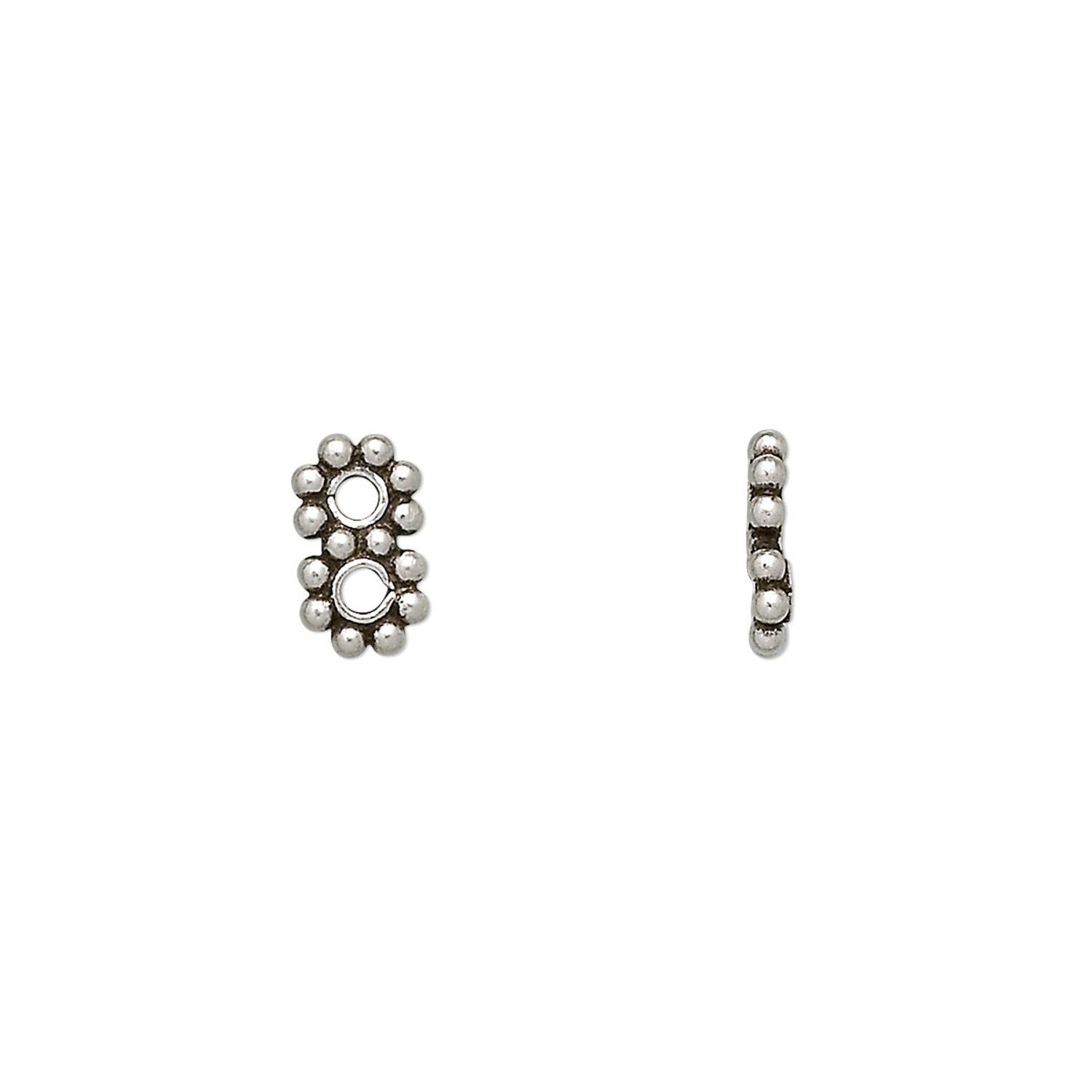 Spacer bar, antiqued sterling silver, 9x5mm 2-strand beaded rectangle. Sold per pkg of 2.