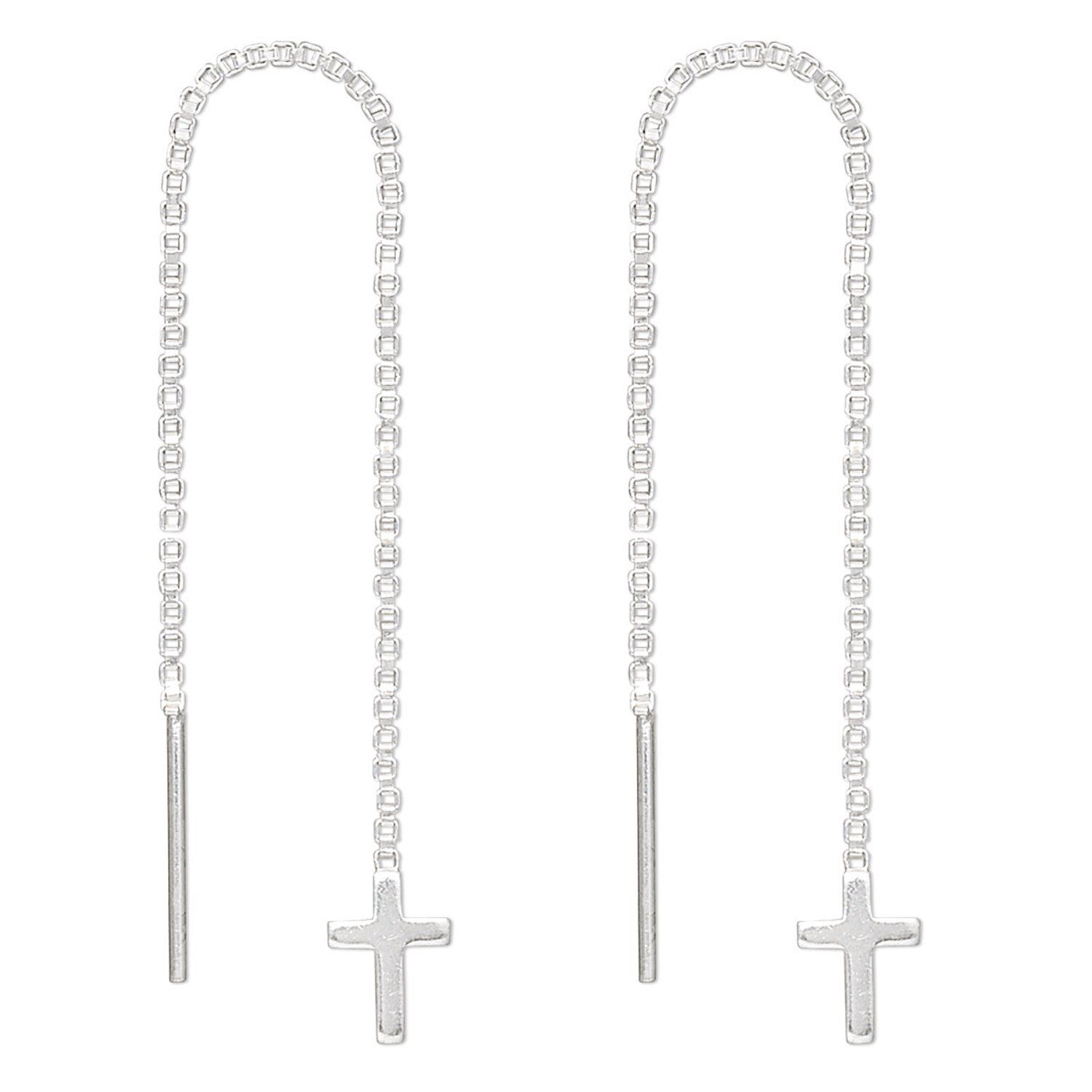 Ear thread, sterling silver, 2-3/4 inch box chain with 8x5.5mm cross. Sold per pair.