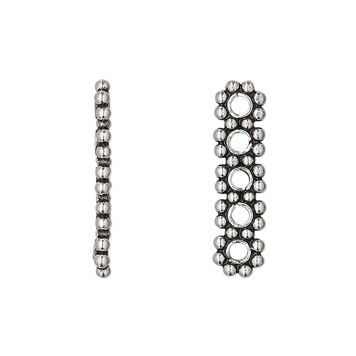 Spacer bar, antiqued sterling silver, 24x6mm 5-strand beaded rectangle, 5mm between holes. Sold per pkg of 2.