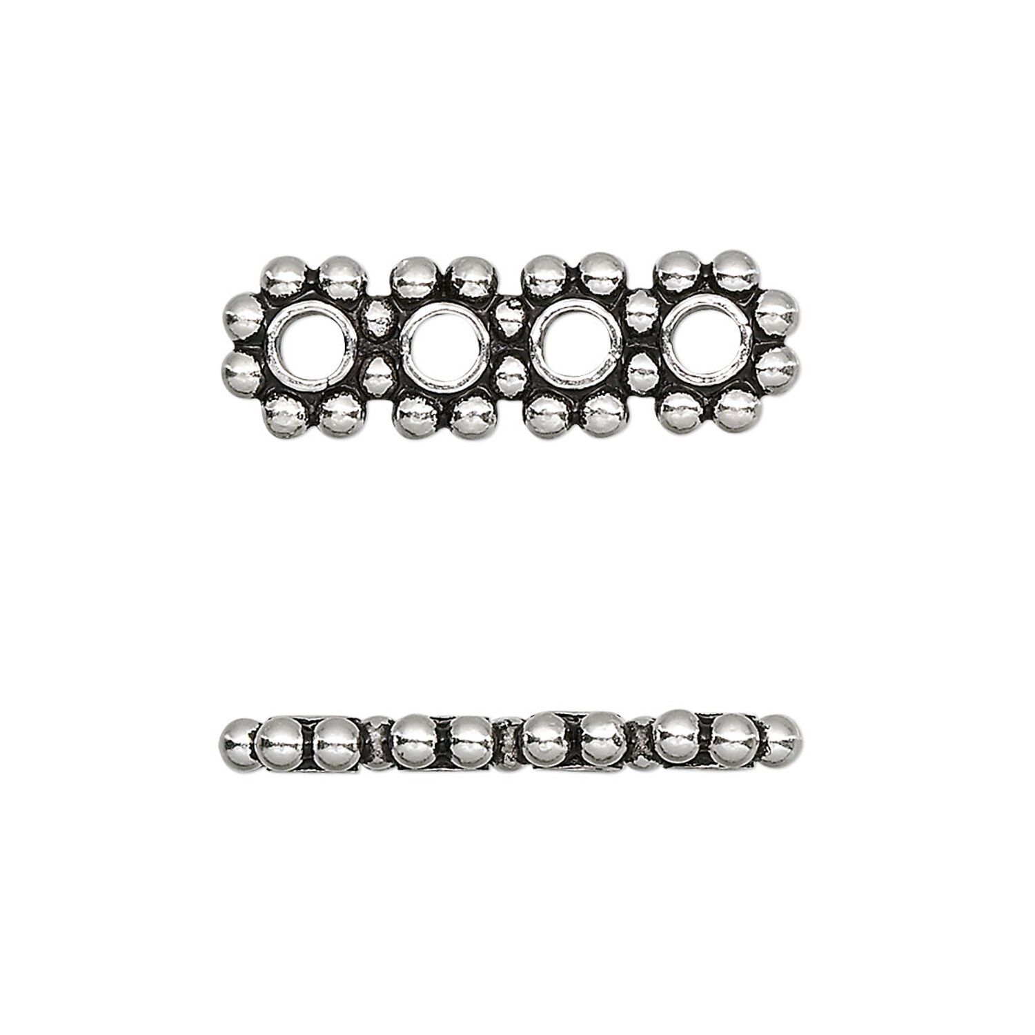 Spacer bead, sterling silver, 4-strand, 25x8x3mm beaded, fits up to 5.5mm bead. Sold per pkg of 2.