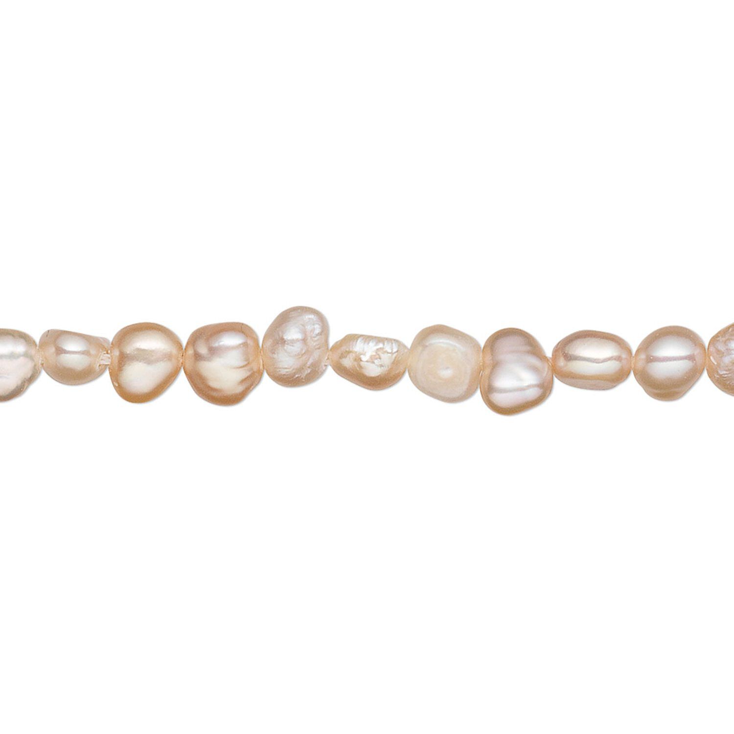 Pearl, cultured freshwater, peach, 4-5mm flat-sided potato, C grade, Mohs hardness 2-1/2 to 4. Sold per 15-inch strand.