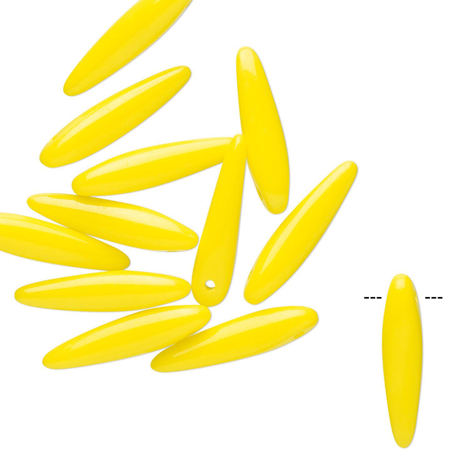 Preciosa Thorn™ pressed glass beads imported from the Czech Republic are thorn-shaped and have an opaque yellow color. Items are made with solid color glass, which means the base color of the glass is saturated throughout the object and will not fade or rub off over time. Size and shape may vary slightly and color may vary from dye lot to dye lot.