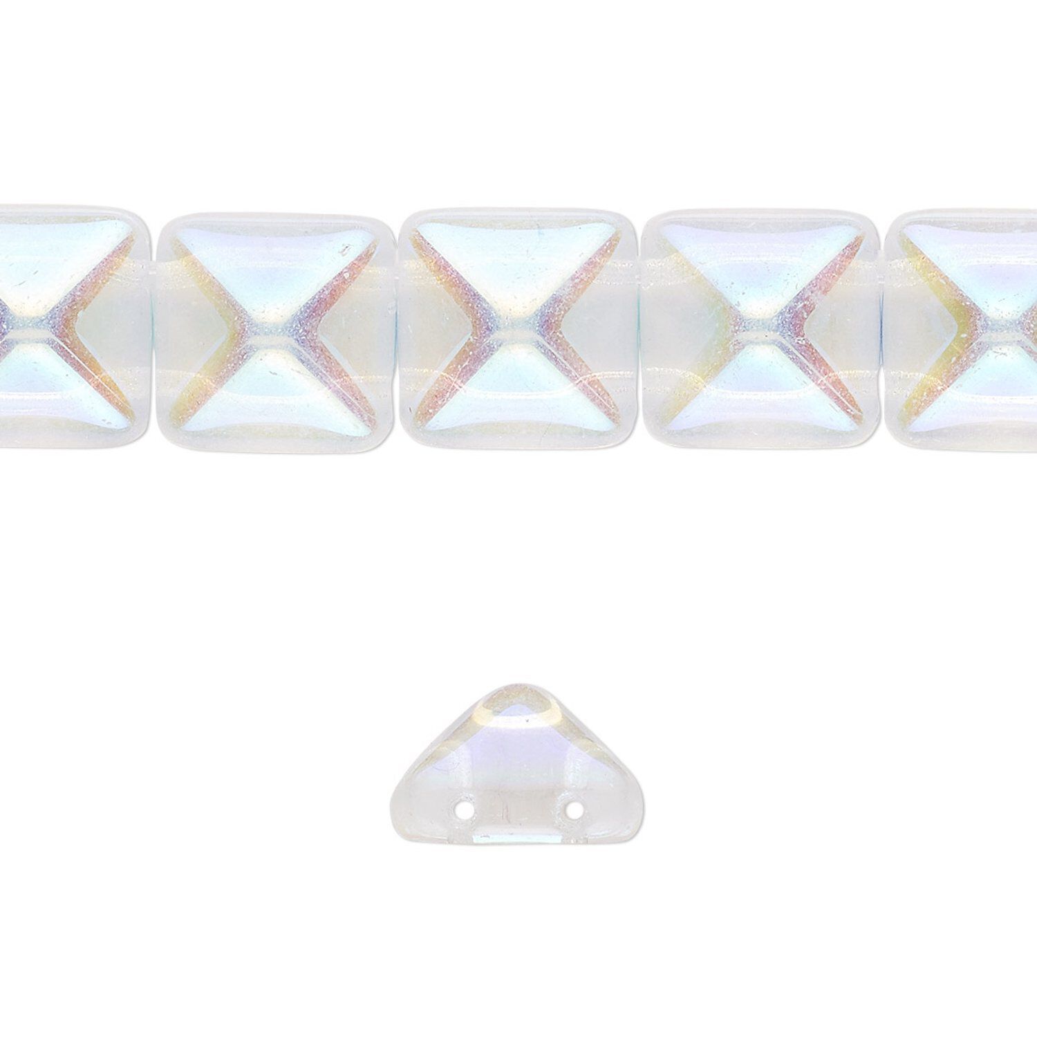 Spacer, Preciosa, Czech pressed glass, transparent clear AB, 11x11x7.5mm 2-strand pyramid, fits up to 5.5mm bead. Sold per 8-inch strand, approximately 15 spacers.