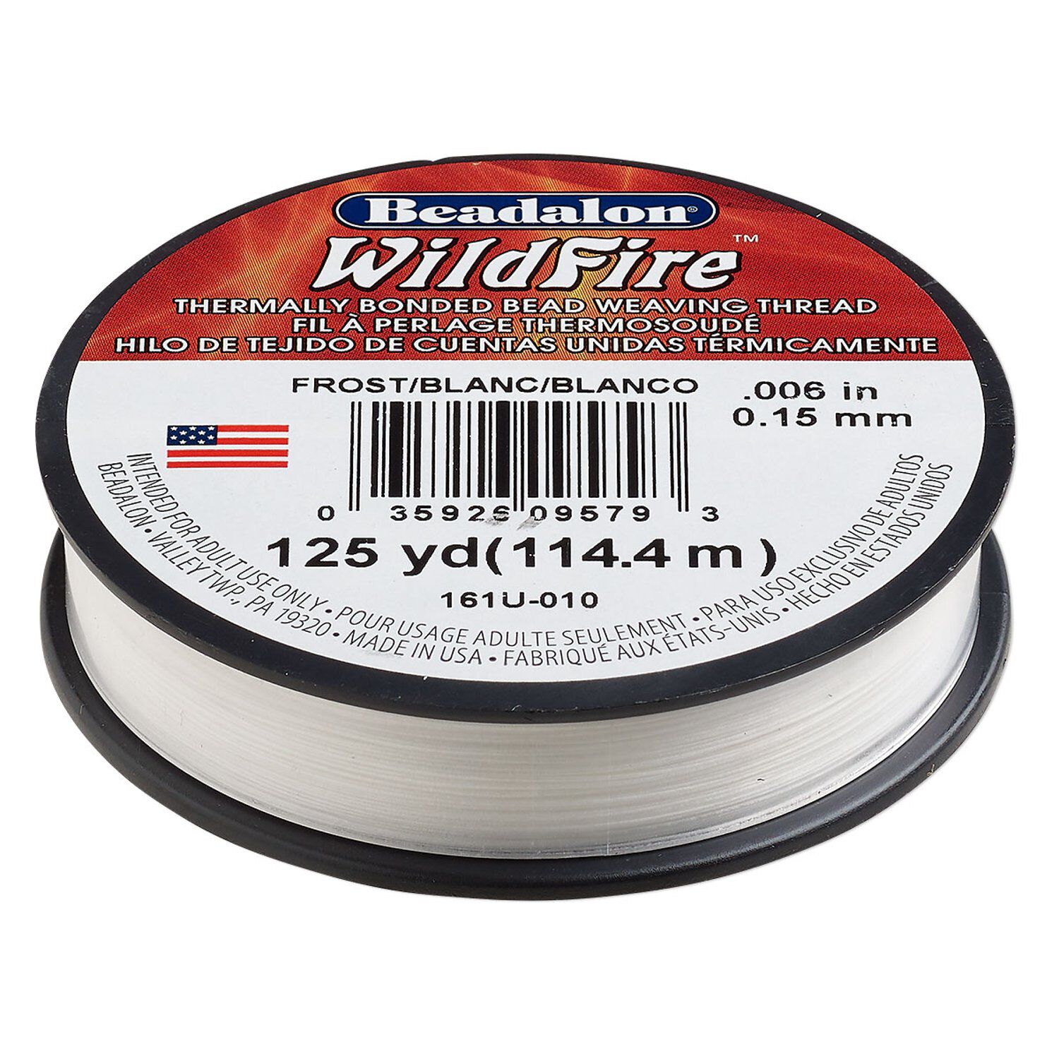 Thread, Beadalon® WildFire™, polyester and plastic, frost, 0.15mm with bonded coating, 10-pound test. Sold per 125-yard spool.