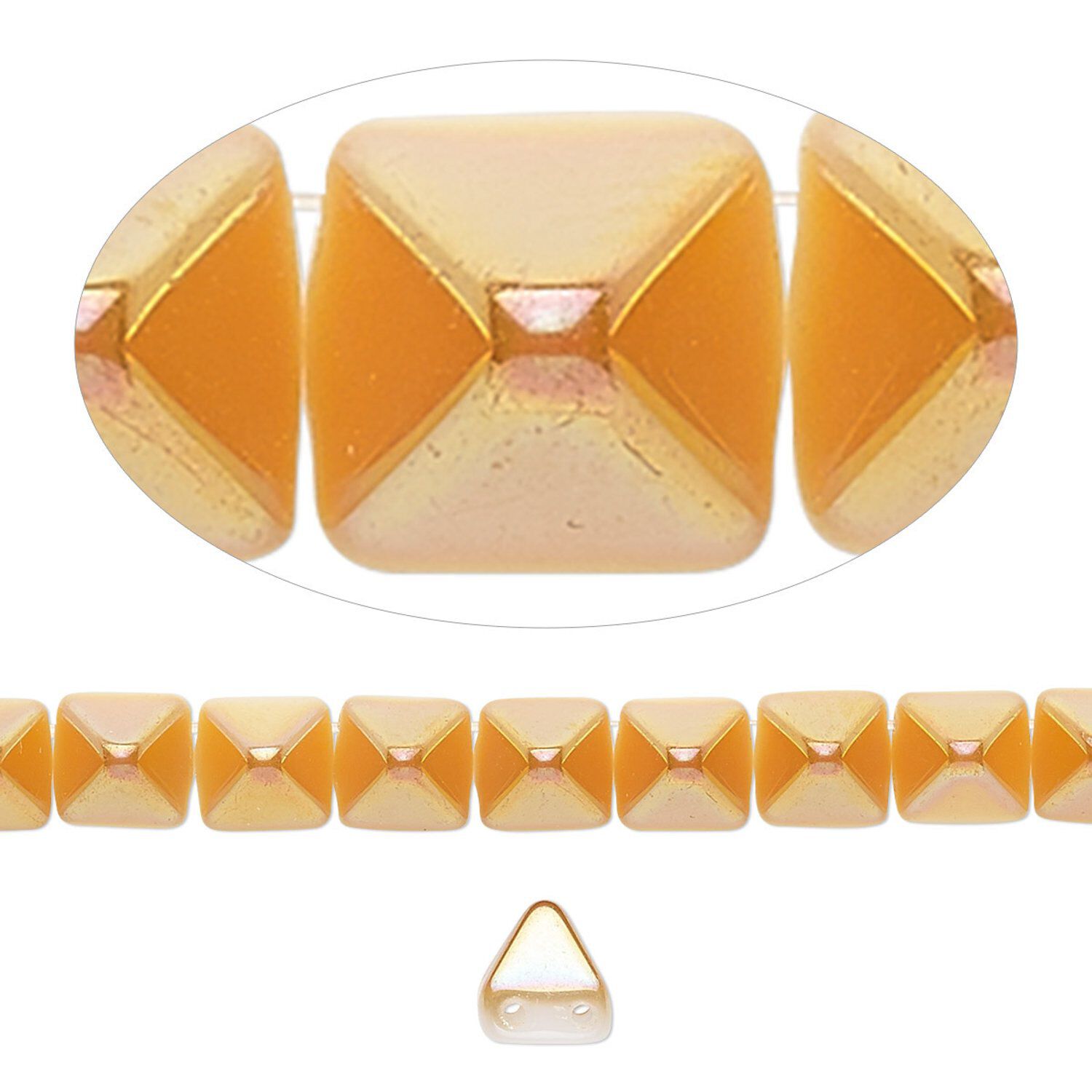 Innovative Czech pressed glass pyramid spacers with two stringing holes are advantageous for multi-strand designs or bead-weaving projects. The base is flat so necklace and bracelet designs rest comfortably flush against skin when worn. Size and shape may vary slightly and color may vary from dye lot to dye lot.