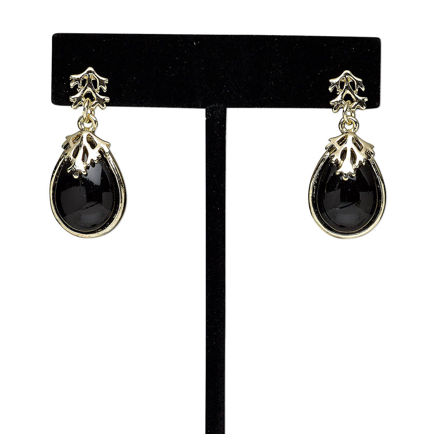 With inspiration from the Art Nouveau period, these lightweight earrings feature black acrylic teardrops resembling gemstones and gold-finished branch-like details. Posts are steel for long-lasting, comfortable wear.