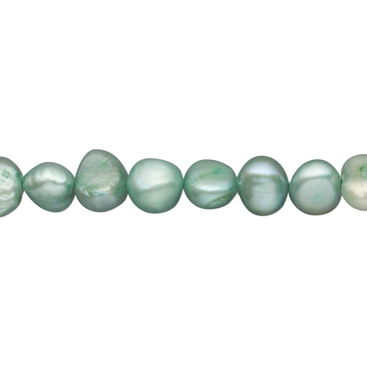 Pearl, cultured freshwater (dyed), sea mist, 6-7mm flat-sided potato, D grade, Mohs hardness 2-1/2 to 4. Sold per 14-inch strand.