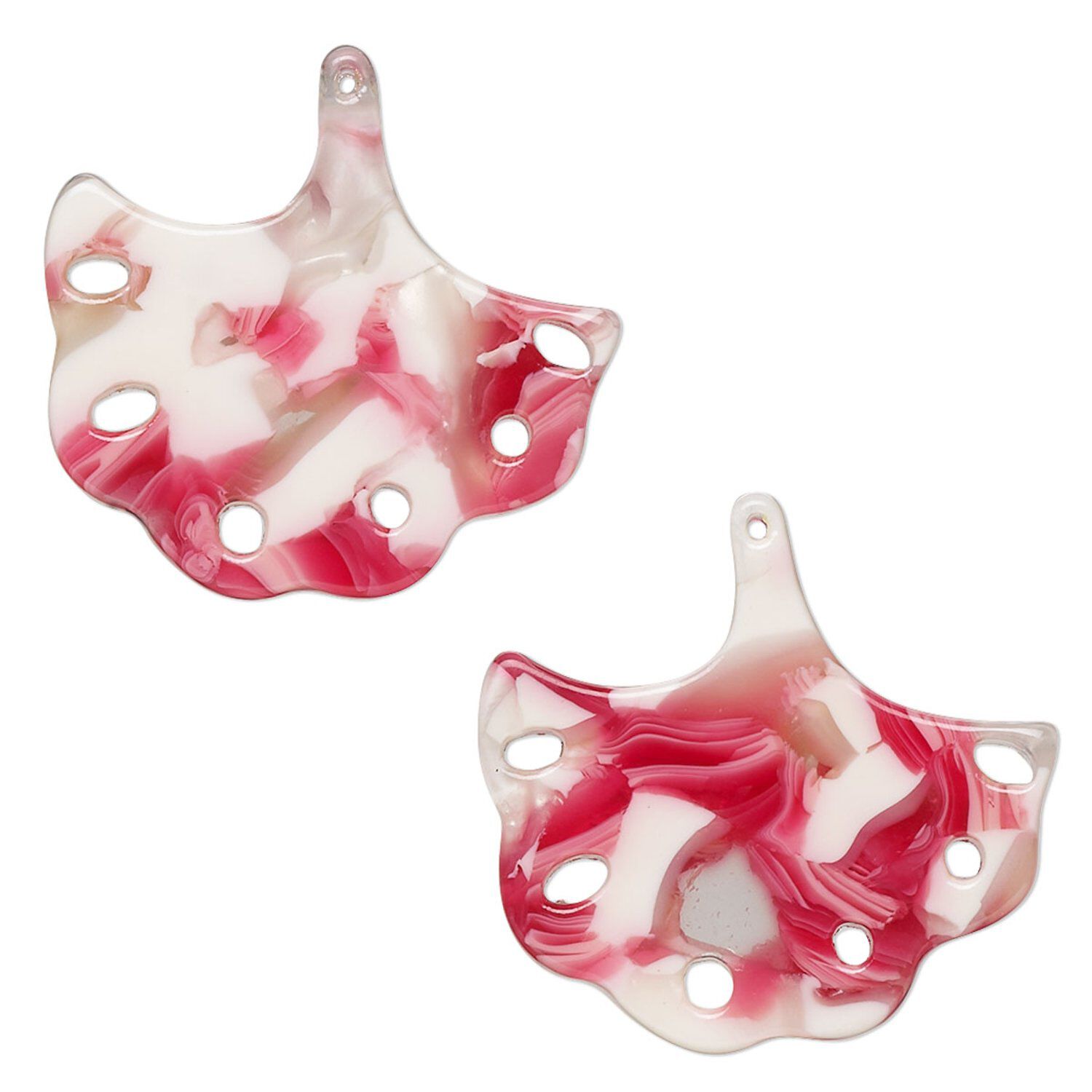 Charm, resin, pink / red / white, 23x22mm ginkgo leaf with cutouts. Sold per pkg of 8.