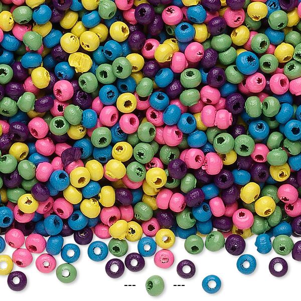 Bead mix, wood, mixed bright colors, 2x2mm rondelle. Sold per 400-gram pkg, approximately 80,000 beads.