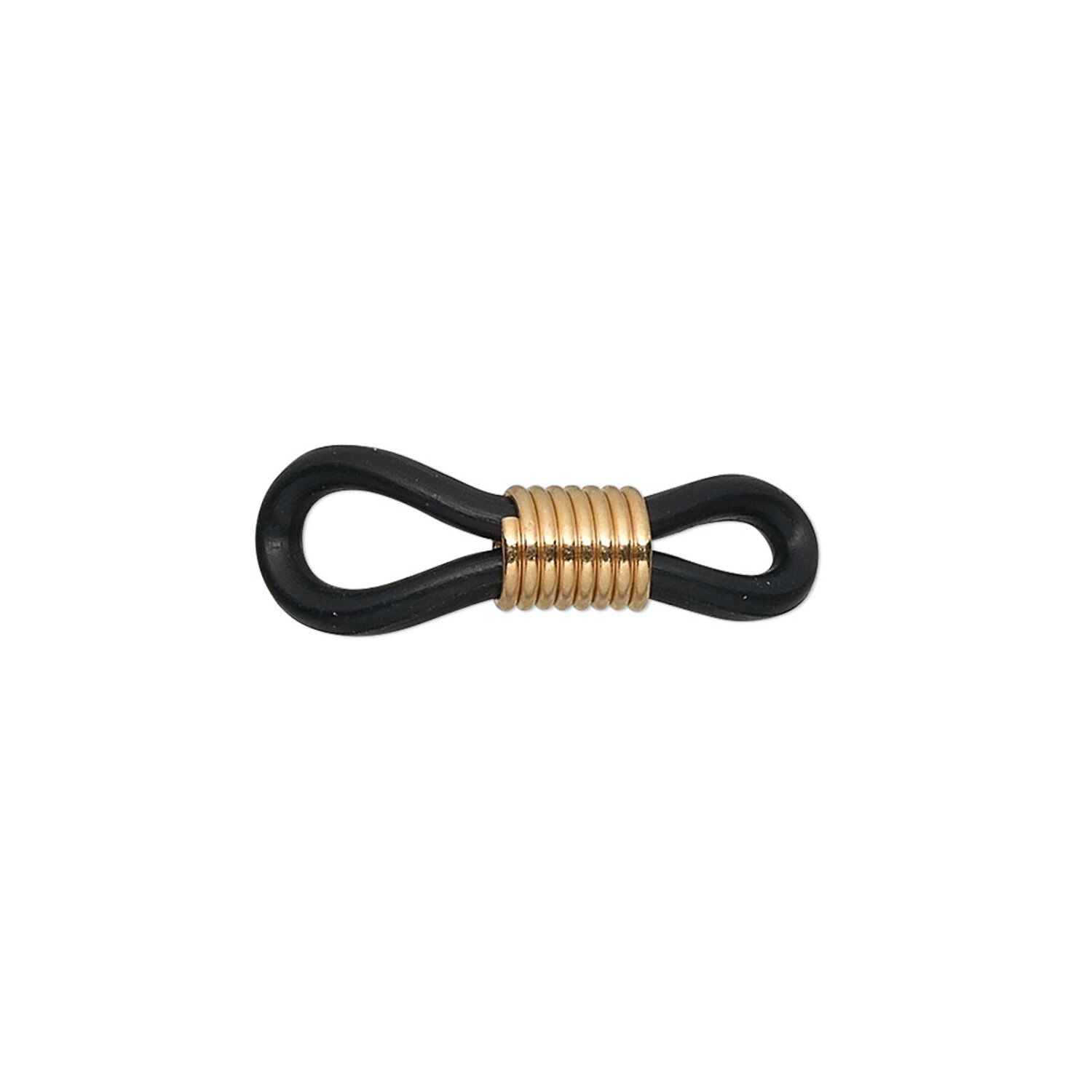 Eyeglass holder, rubber and gold-finished brass, black, 20x5mm-26x5mm with adjustable coil. Sold per pkg of 500.