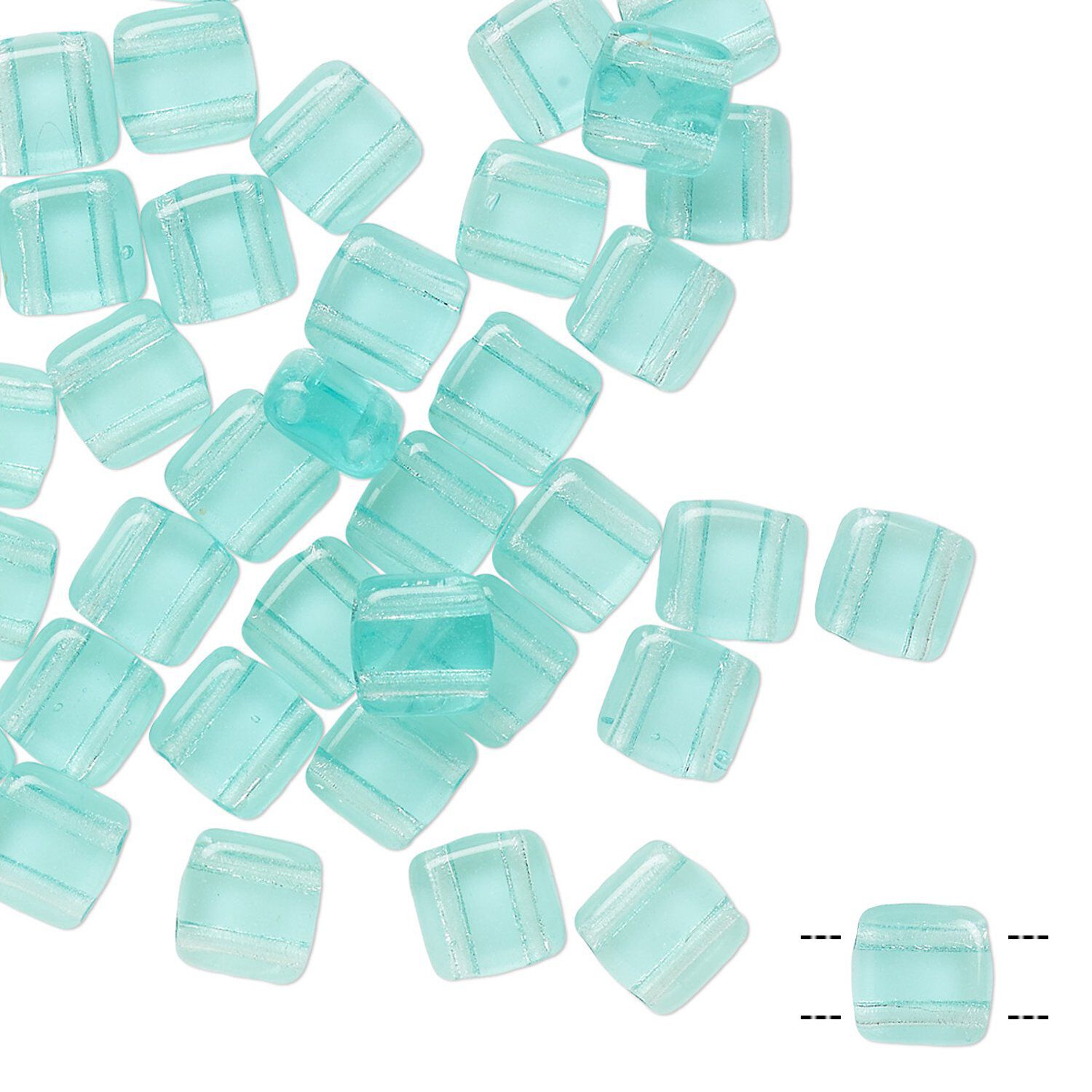 Bead, Preciosa, Czech pressed glass, transparent light aqua, 6x6mm flat square with (2) 0.7mm holes. Sold per pkg of 40.