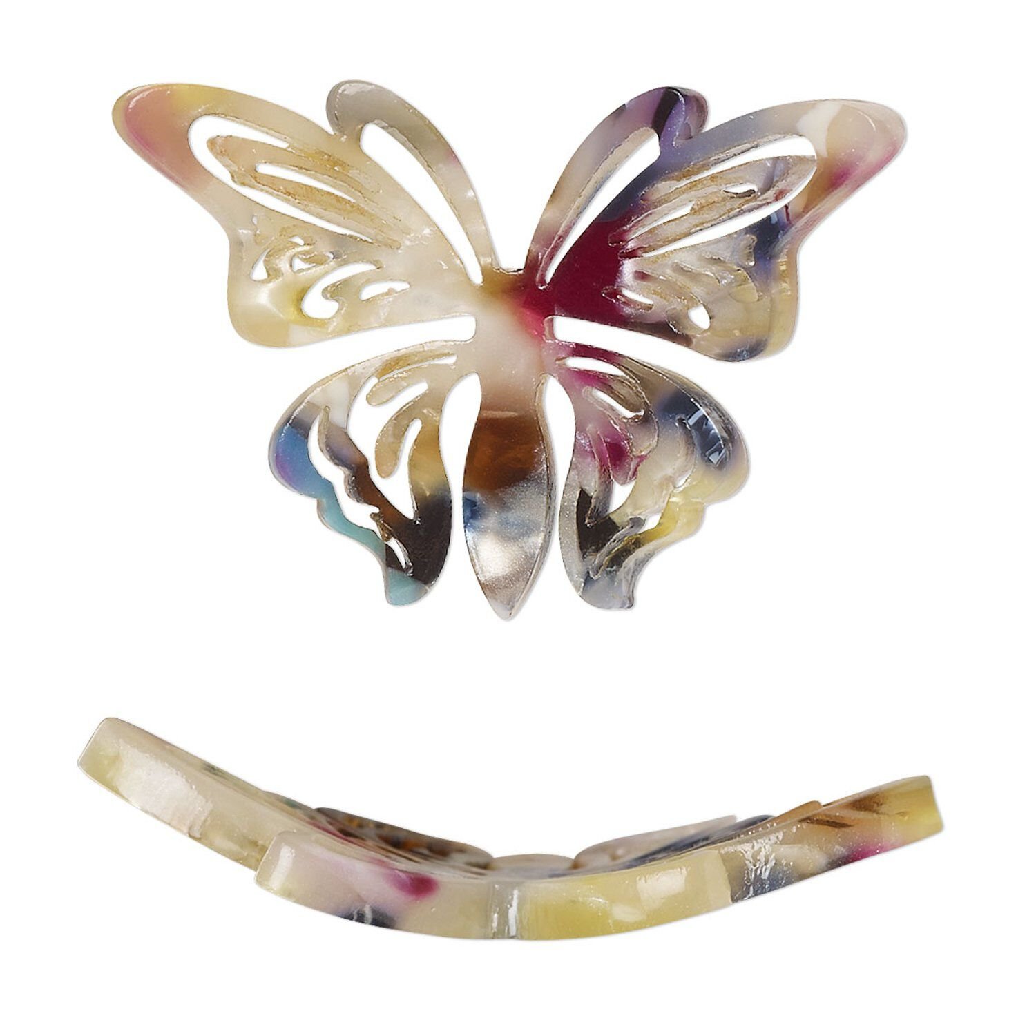 Focal, resin, multicolored, 35x22mm curved butterfly with cutouts. Sold per pkg of 4.