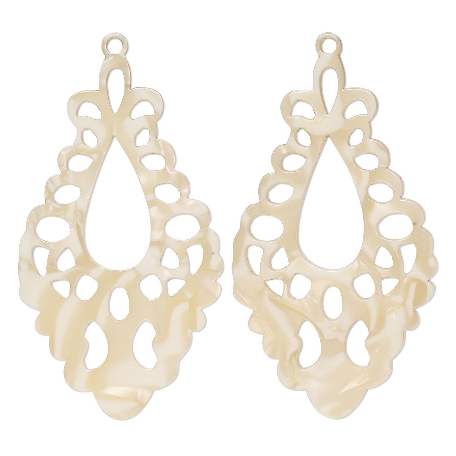 Bring on the glamor with these fabulous filigree focals. Lightweight resin focals have a smooth surface and areas of sheen similar to mother-of-pearl. Cutouts and open spaces along the edges make it easy to create earrings and necklaces.