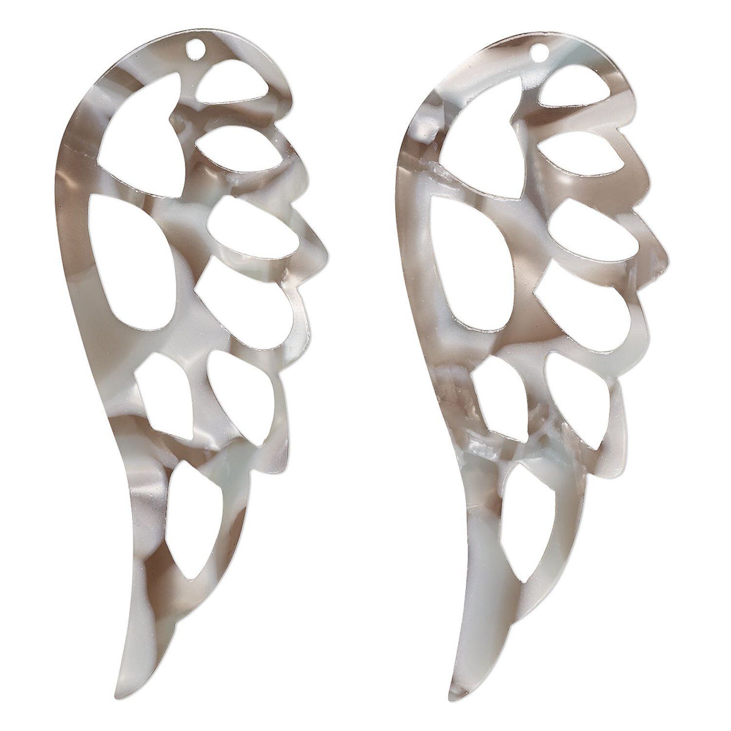 Let your imagination take flight with these airy wings. Lightweight resin focals have a smooth surface and areas of sheen similar to mother-of-pearl. Cutouts and open spaces along the edges make it easy to create earrings and necklaces.