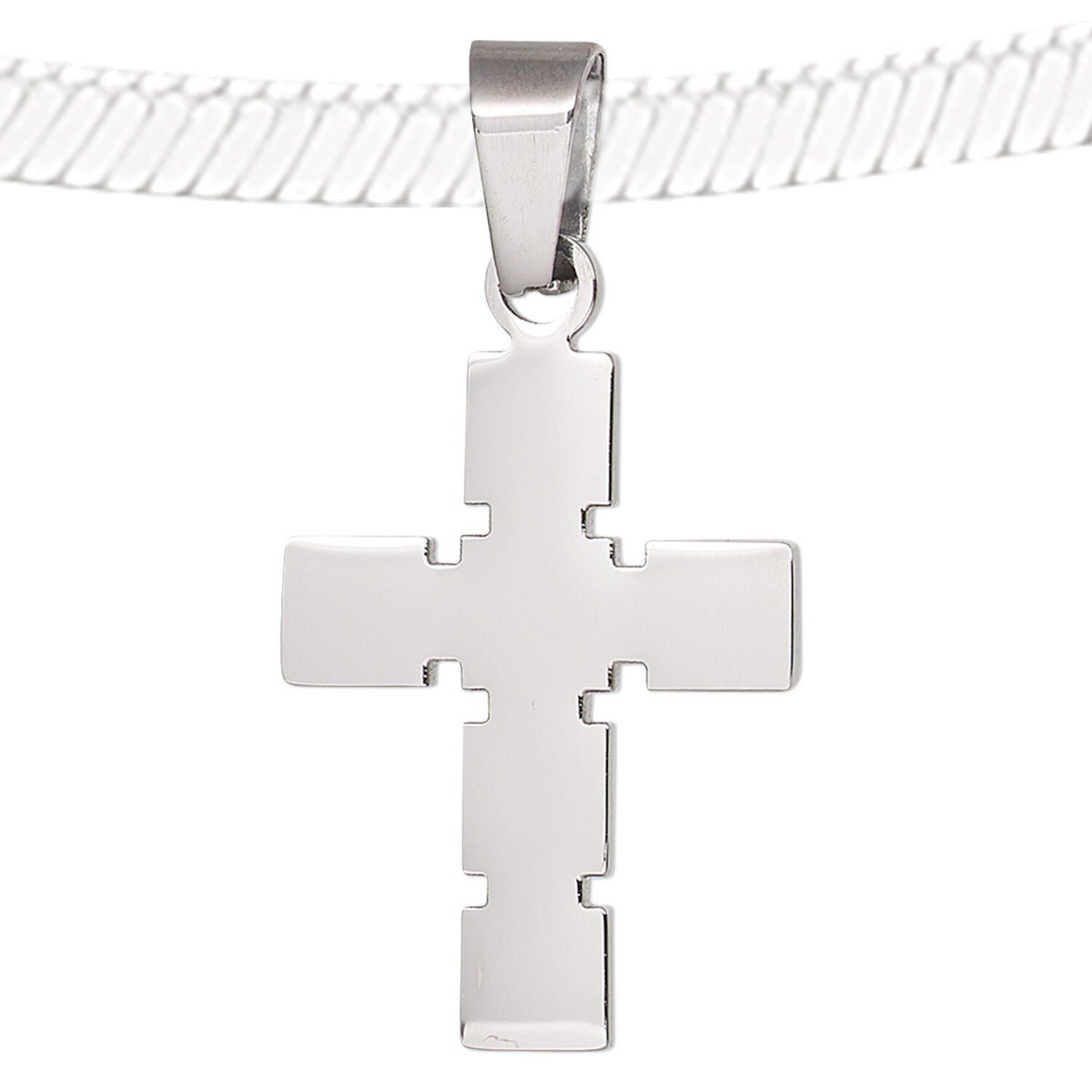 Featuring a contemporary notched design, this 316L stainless steel double-sided cross offers a generous bail to accommodate leather or satin cord, chain and more. Retaining a rich color over time, this on-trend stainless steel pendant is durable, economical and resists rust or oxidation.