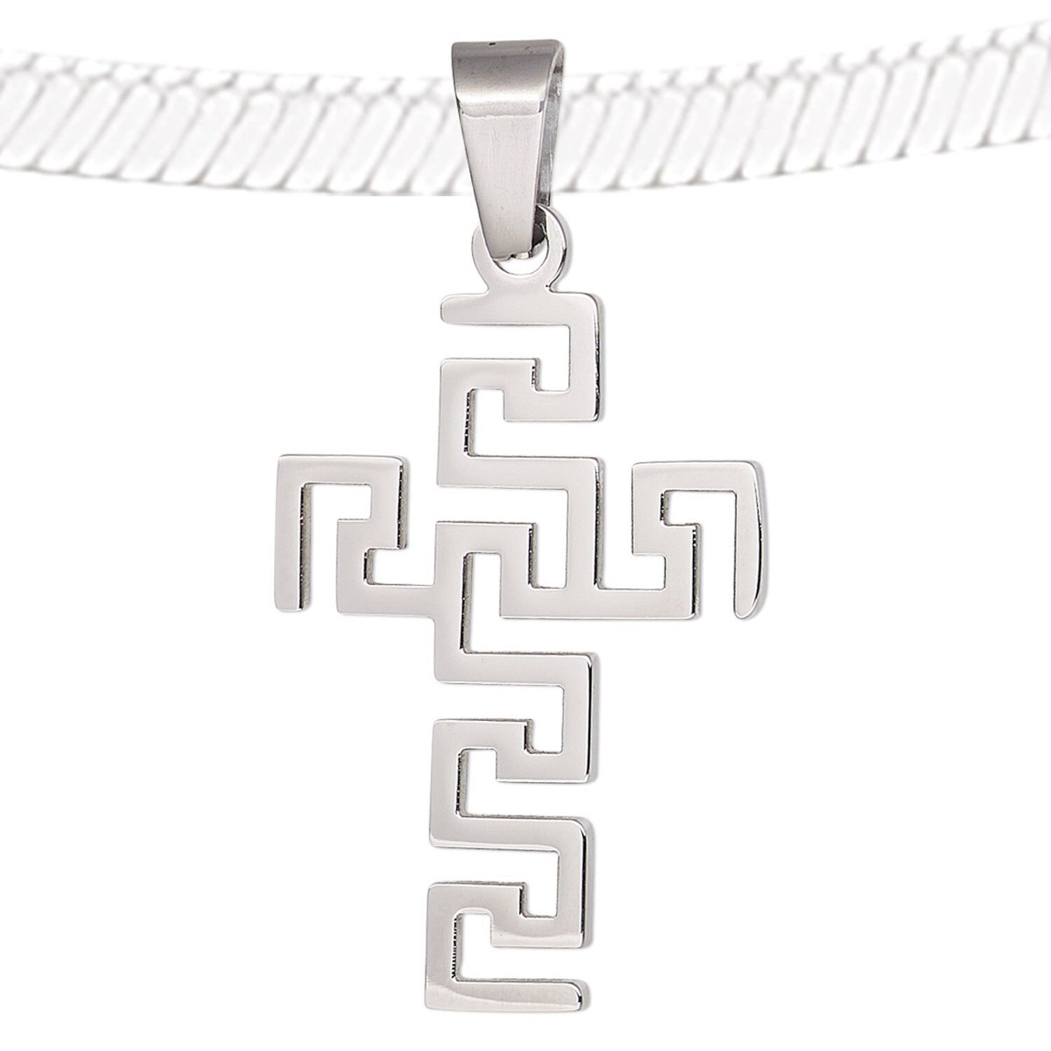 Pendant, stainless steel, 37x22mm double-sided cross with geometric design. Sold individually.