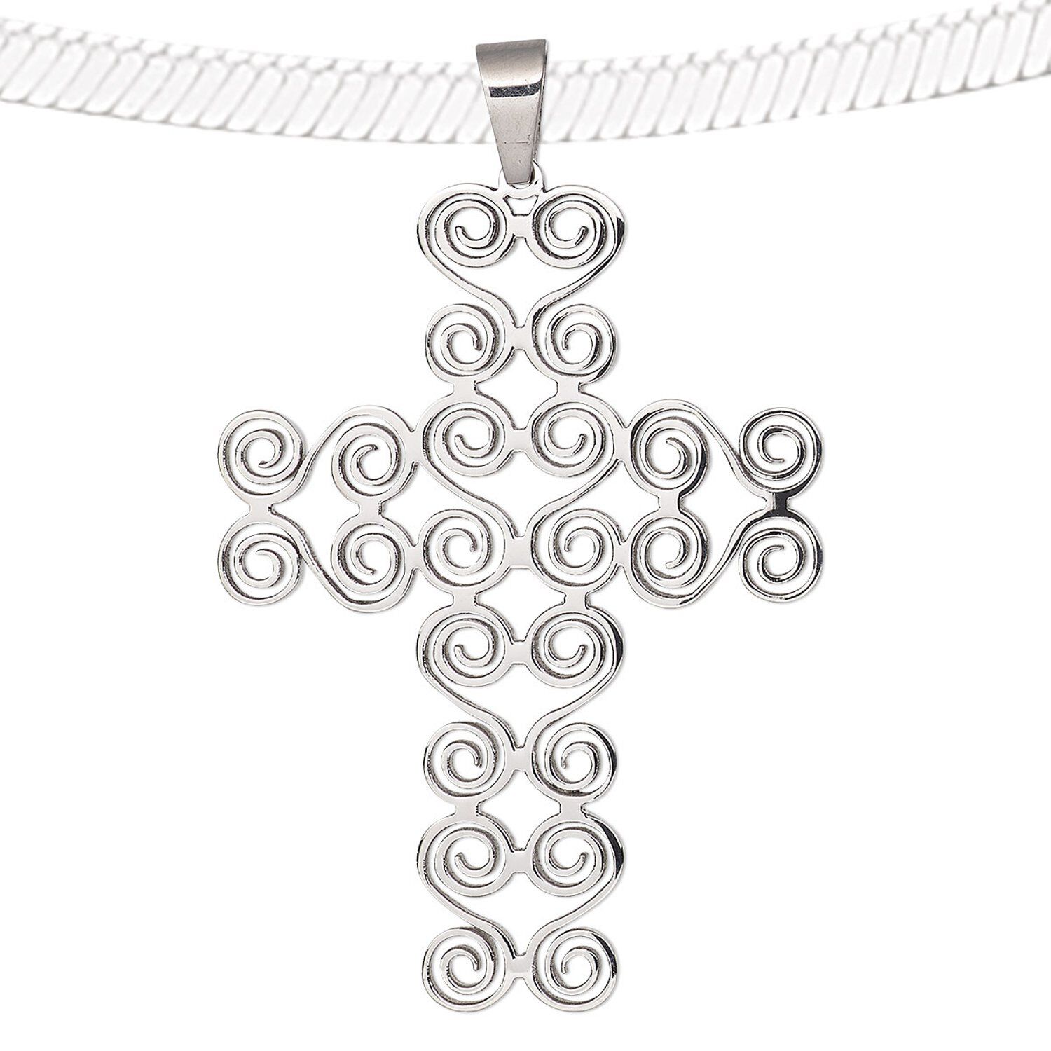 Featuring a graceful swirl design, this 316L stainless steel double-sided cross offers a generous bail to accommodate leather or satin cord, chain and more. Retaining a rich color over time, this stylish stainless steel pendant is durable, economical and resists rust or oxidation.