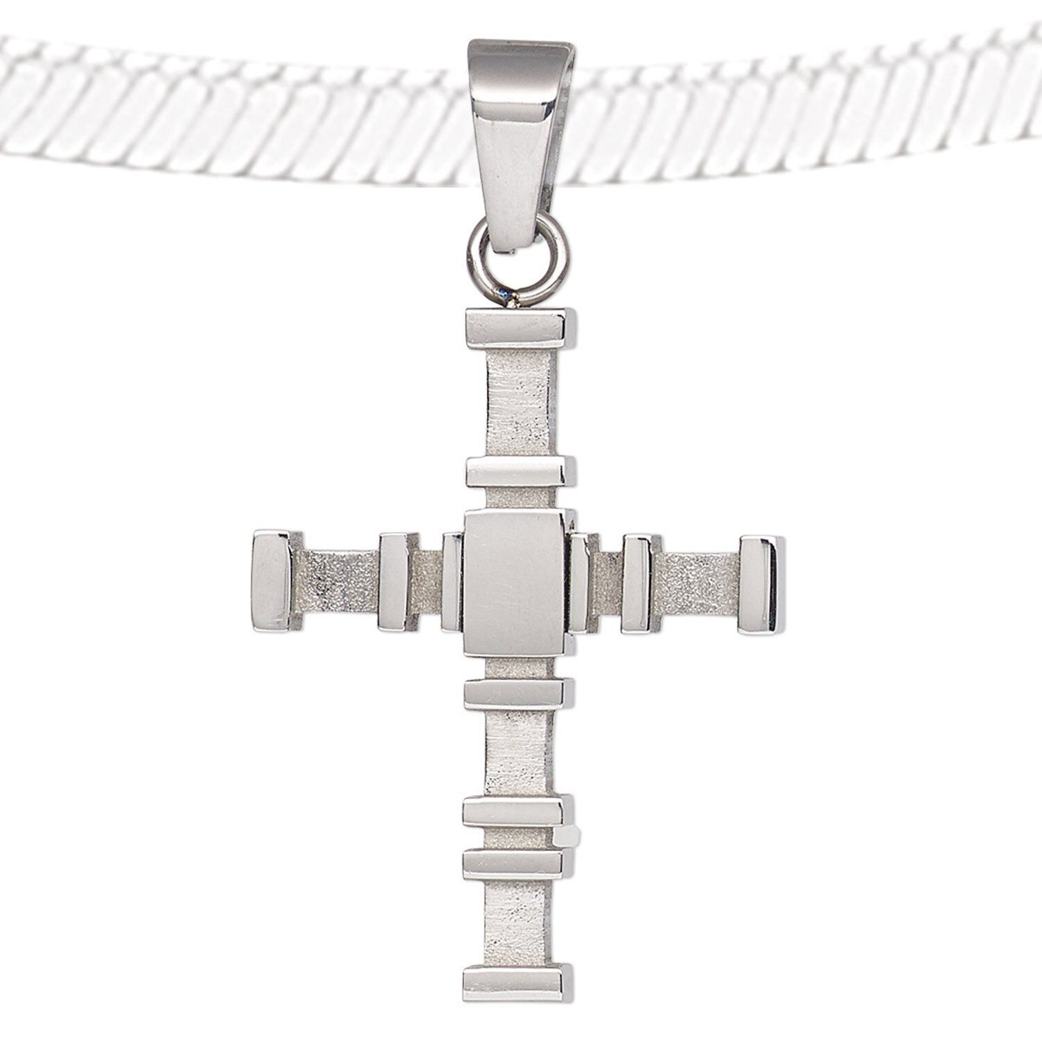 Featuring an intriguing tiered design, this 316L stainless steel double-sided cross offers a generous bail to accommodate leather or satin cord, chain and more. Retaining a rich color over time, this on-trend stainless steel pendant is durable, economical and resists rust or oxidation.