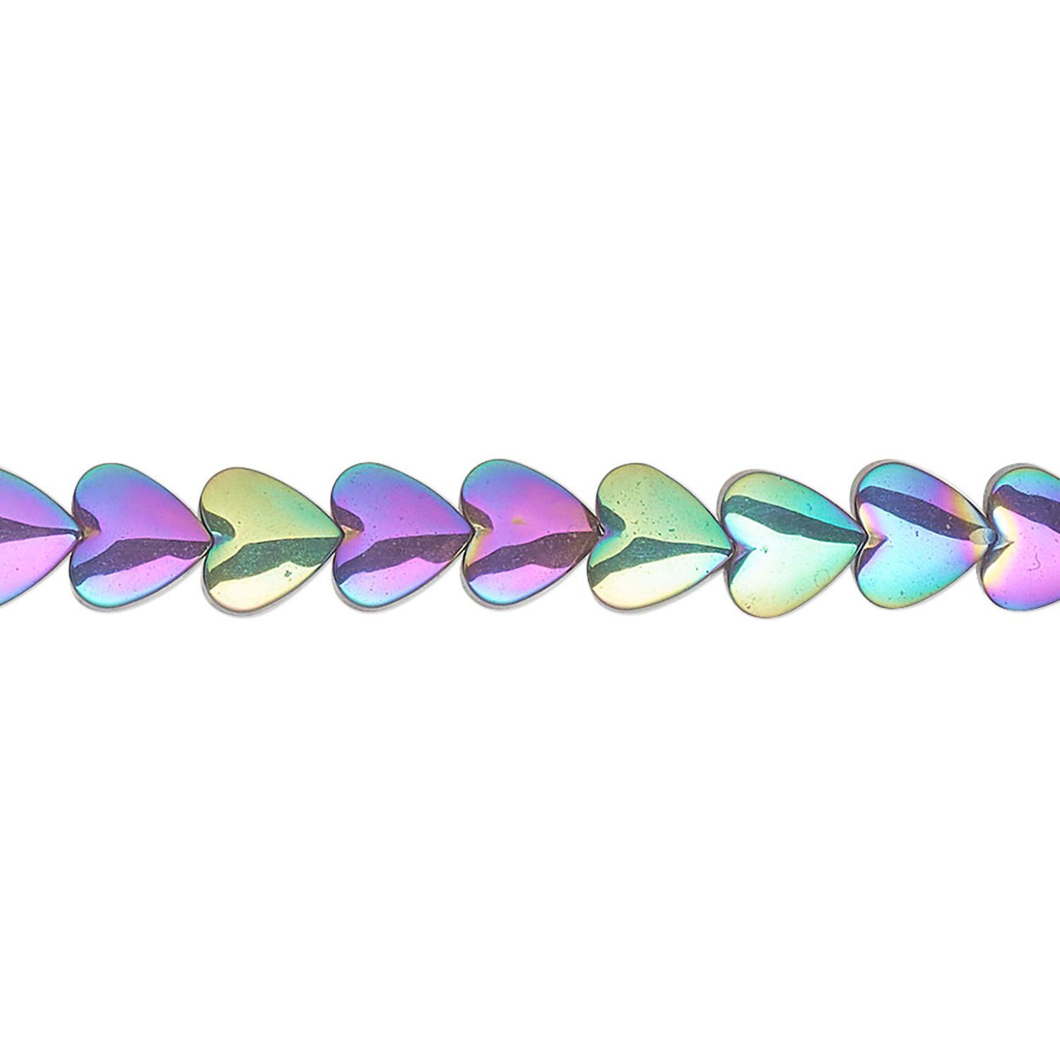Add a touch of romance with these sweet heart beads. Non-magnetic Hemalyke™ beads in multi-hued, permanent colors. Great for necklace and bracelet designs.