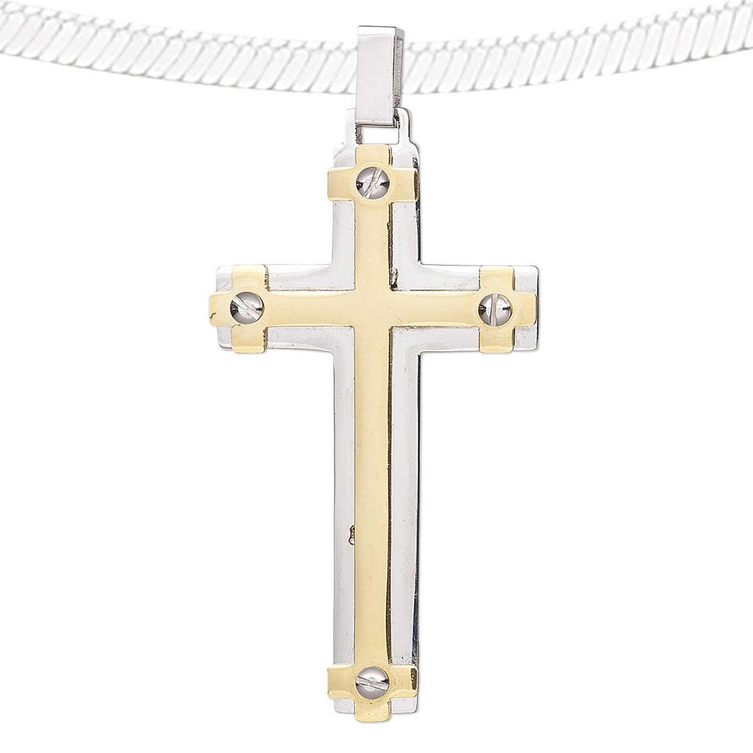 Pendant, stainless steel and gold-finished stainless steel, 47x25mm Gothic cross. Sold individually.
