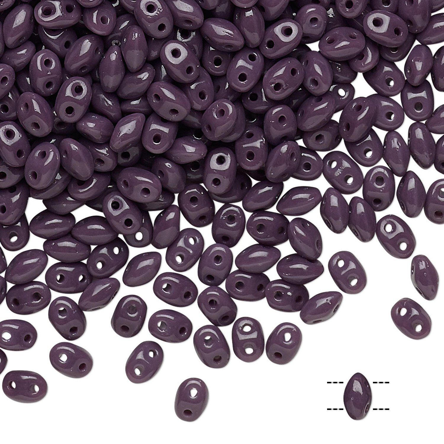 Bead, Preciosa Twin™, Pressed Twin, Czech pressed glass, purple, 5x2.5mm oval with (2) 0.7-0.8mm holes. Sold per 250-gram pkg.