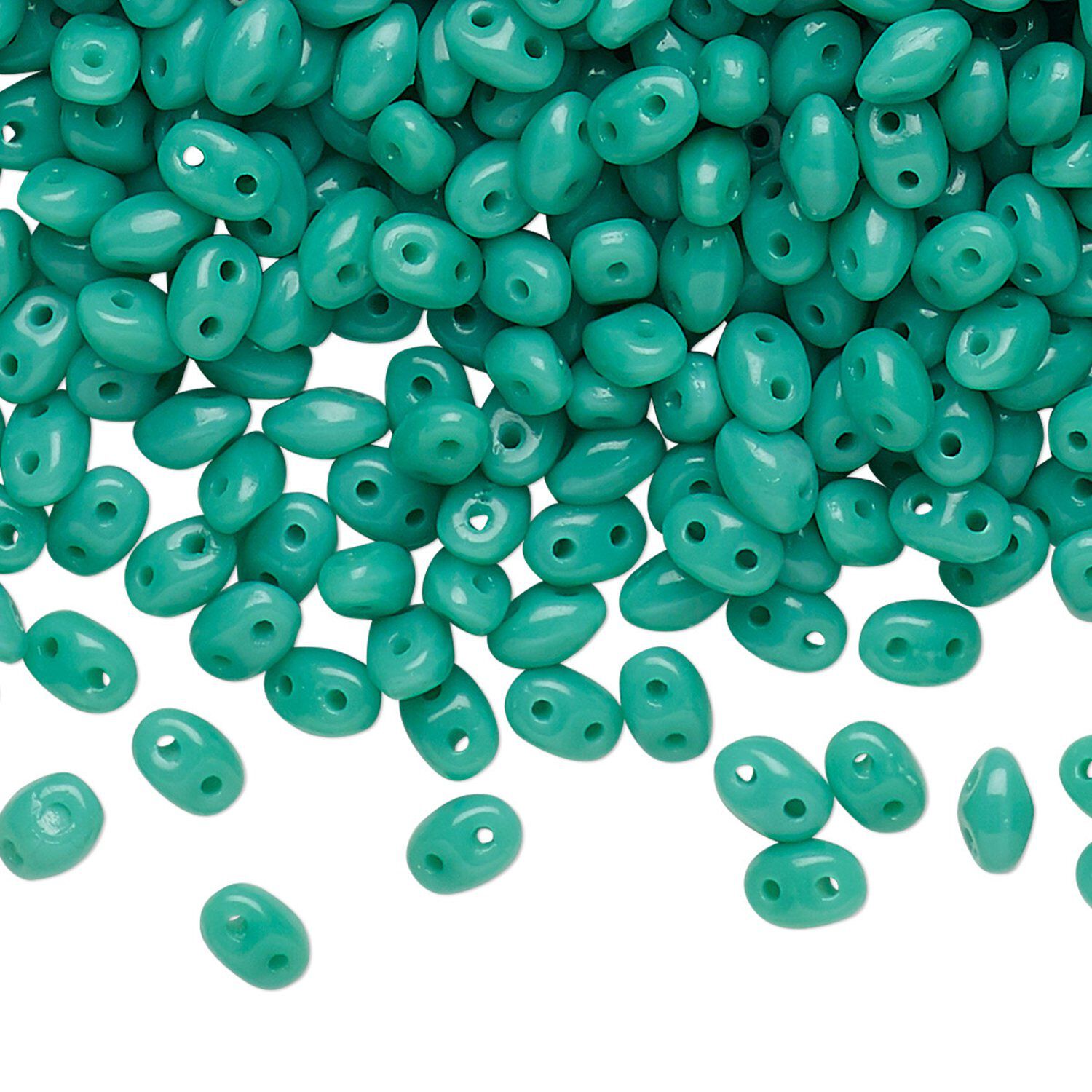 Bead, Preciosa Twin™, Pressed Twin, Czech pressed glass, opaque turquoise green, 5x2.5mm oval with (2) 0.7-0.8mm holes. Sold per 250-gram pkg.