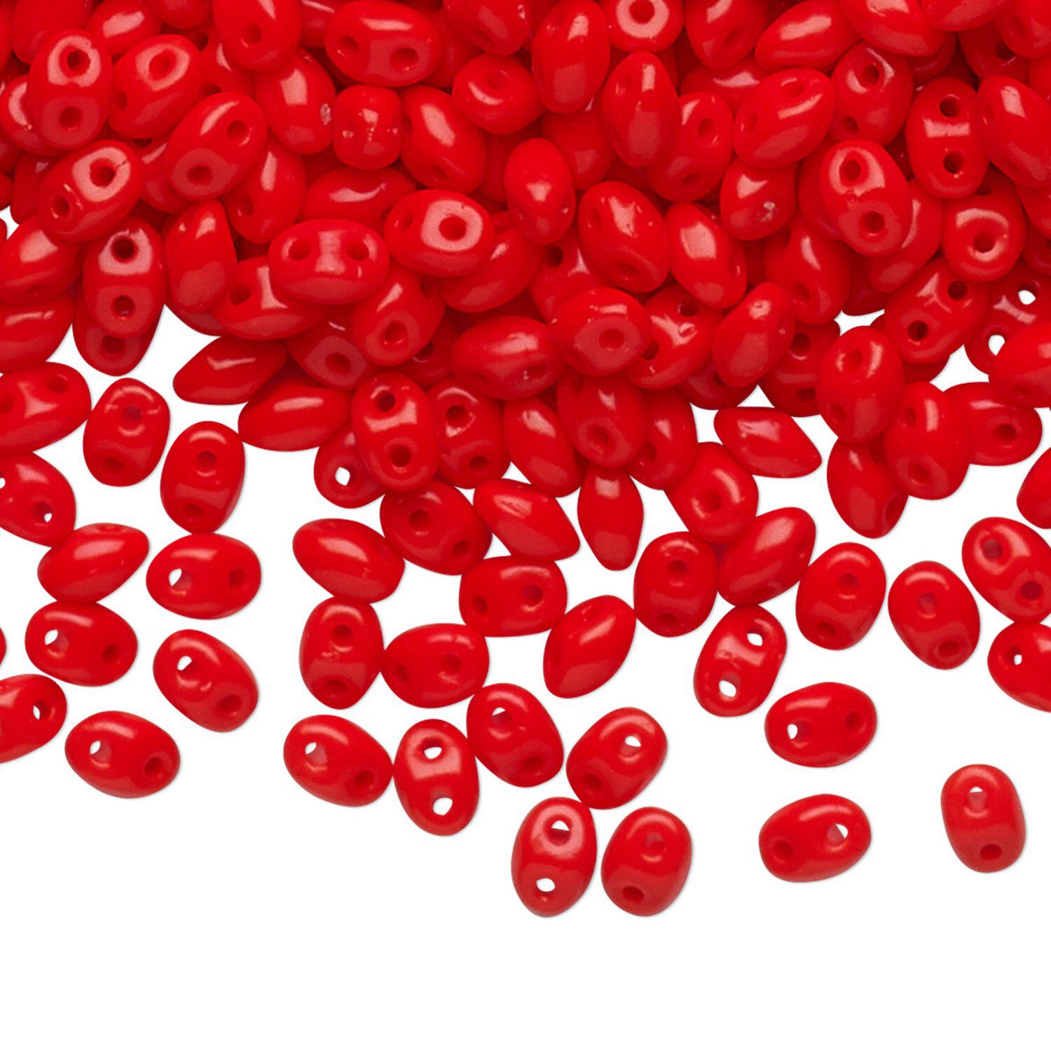 Bead, Preciosa Twin™, Pressed Twin, Czech pressed glass, opaque orange-red, 5x2.5mm oval with (2) 0.7-0.8mm holes. Sold per 250-gram pkg.