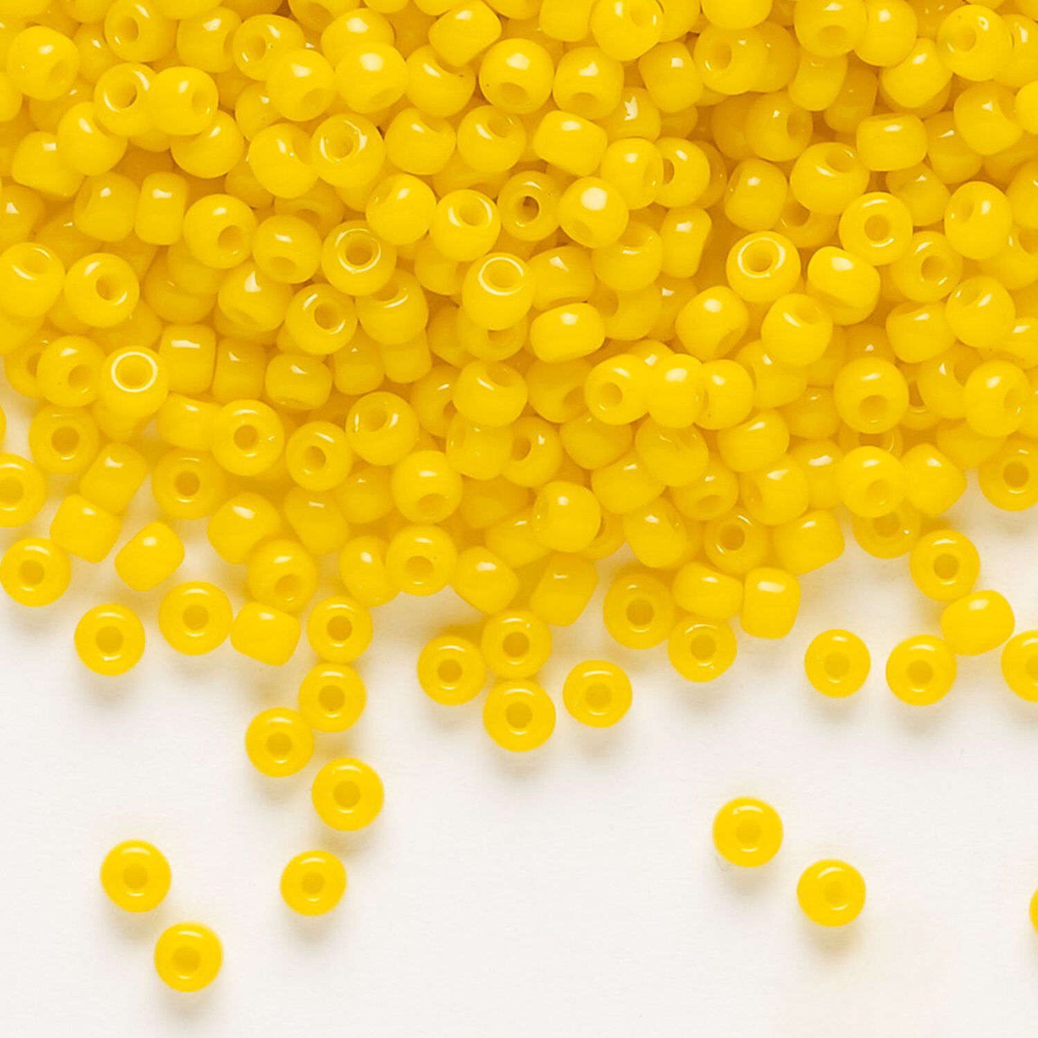 Seed bead, Dyna-Mites™, glass, opaque dark yellow, #8 round. Sold per 1/2 kilogram pkg.