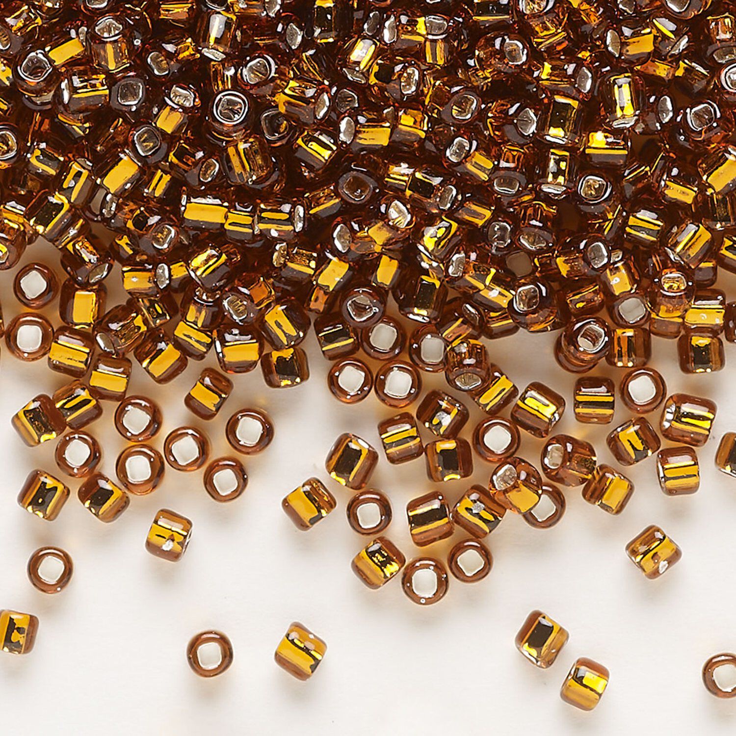 Seed bead, Dyna-Mites™, glass, silver-lined translucent root beer, #8 round with square hole. Sold per 40-gram pkg.