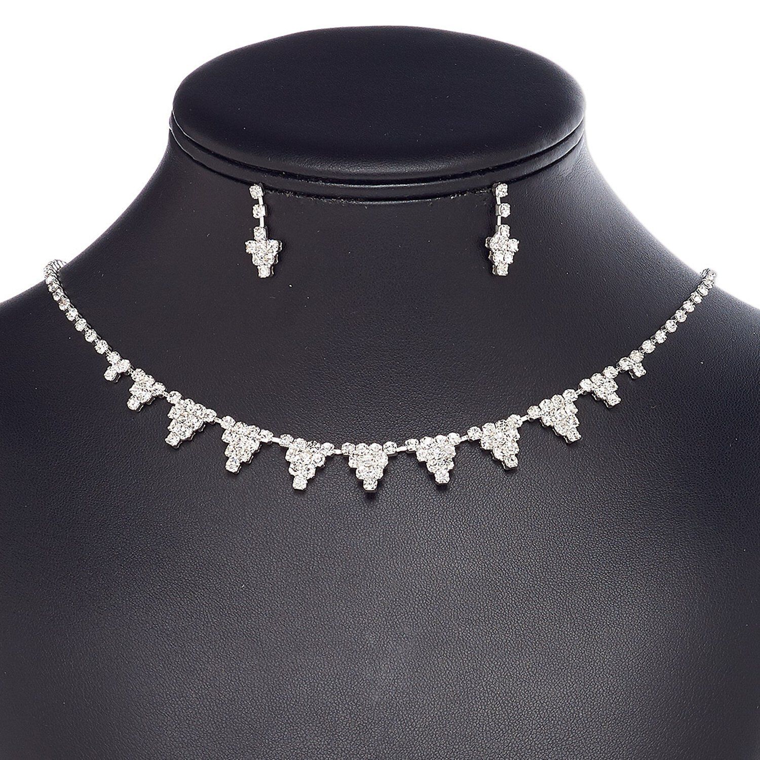 Stock this finished necklace and earring set for increased counter sales and expanding your finished jewelry lines. glass rhinestones provide sparkly, easy fashion. Comfort clutch earnuts included. Colors, shapes and sizes may vary in each lot.