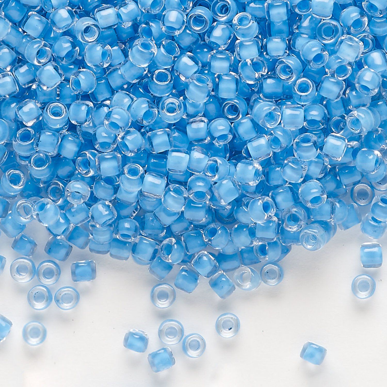 Seed bead, Dyna-Mites™, glass, translucent inside color aqua blue, #8 round. Sold per 1/2 kilogram pkg.